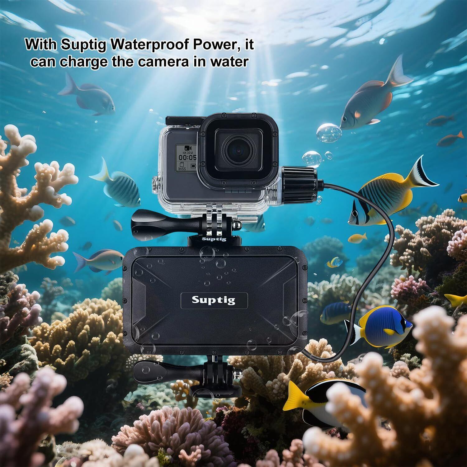 幅広い用途:充電式防水ケースは水中でもカメラの電源に影響を与えません。Suptig防水パワーバンクまたはSuptigパワーバンク防水ライトと組み合わせて使用できます。 For Gopro hero 5とGopro hero 6 Gopro hero 2018カメラと完全に互換性があります。