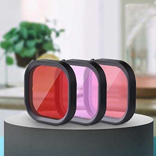 【ダイビングフィルター3セット】 3種類のフィルターはすべて、GoPro Hero 12/11/10/9 Black用Fitstill防水ケースに簡単に装着できます。ピンクのフィルターは、水深2~15フィートのシュノーケリングエリア、青い海、透明な淡水での色補正に使用します。レッドフィルターは、水深15~85フィート(約4.5~24.3メートル)、青水域または熱帯水域での色補正に使用でき、スキューバダイビングやフリーダイビングに適しています。マゼンタフィルターは、水深7~70フィート(約2.1~21.3メートル)の水の色と、7フィート(約2.1メートル)以上で緑色に見える淡水の色を補正するために使用されます。