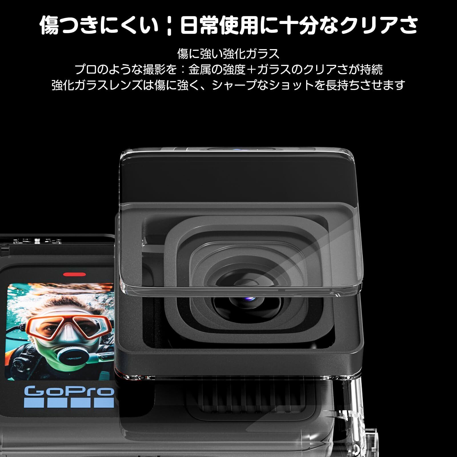水中でのHD撮影:高透過率で作られた強化HDガラスレンズ、ダイビング中にGo Pro 9/10/11 レンズに傷が付かないように保護します。高強度、高靭性のプラスチック製で透明度の高い特殊保護カバー。