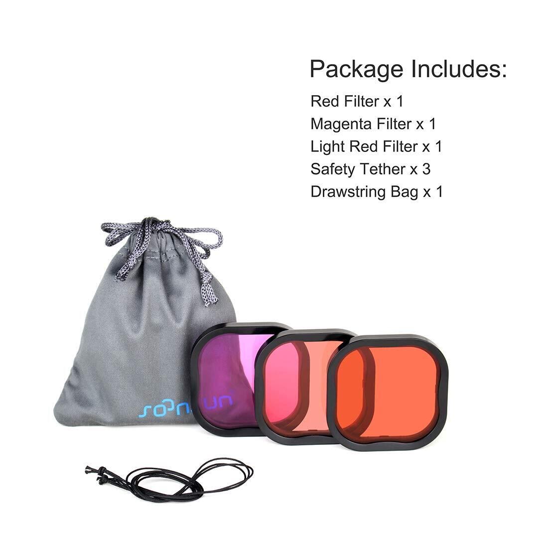 SOONSUN ダイビングフィルター 3個パック GoPro Hero 8 9 10 11 12 13用 ブラック 公式防水ハウジングケース - レッド ライトレッド マゼンタ フィルター - 水中ビデオと写真撮影用色補正