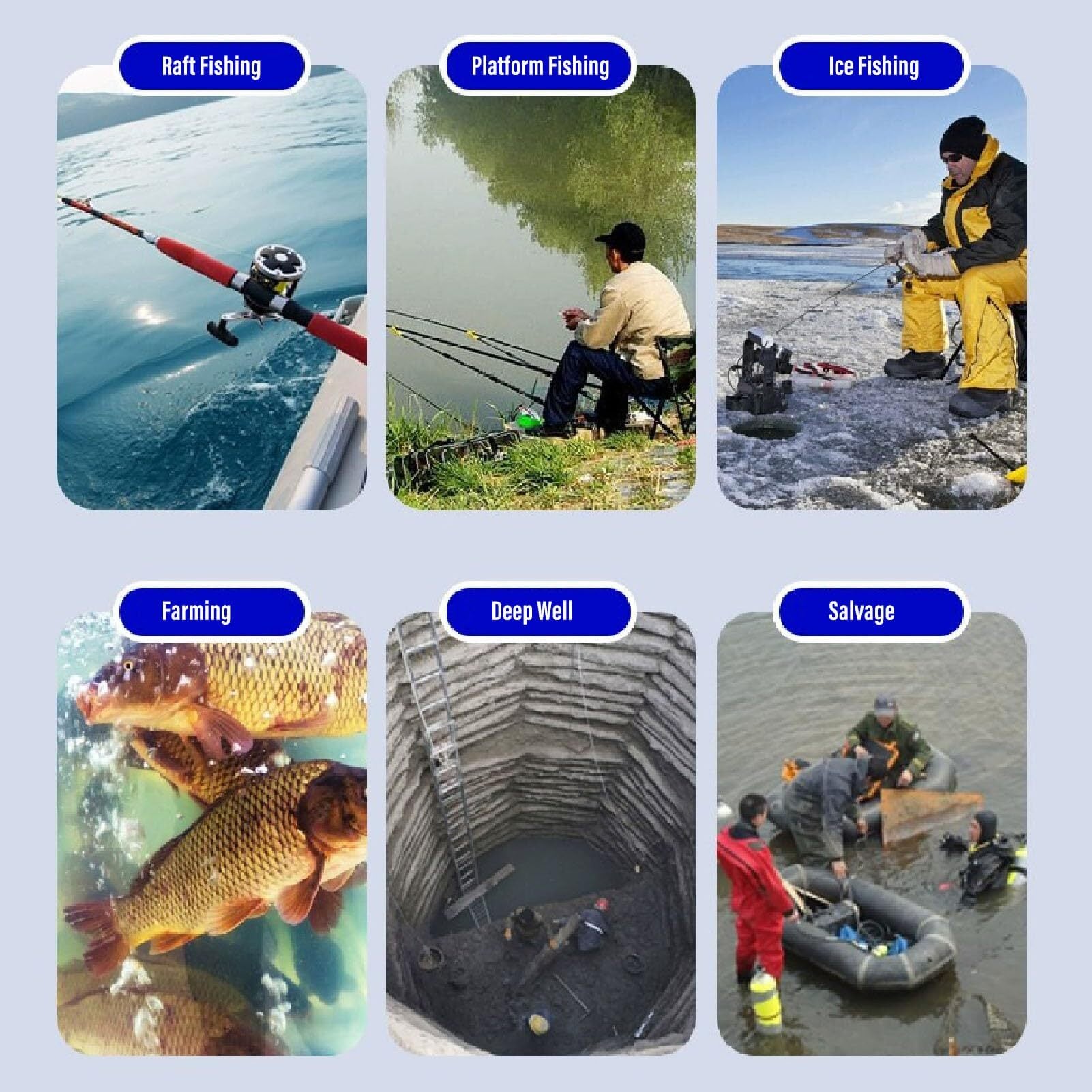 マルチシーンの使用:カメラは、ラフトフィッシング、プラットフォーム釣り、アイスフィッシング、養殖、深い井戸検出、適用時の水中作業の一部など、さまざまな環境での使用をサポートします。シーンの適用は非常に有用です。