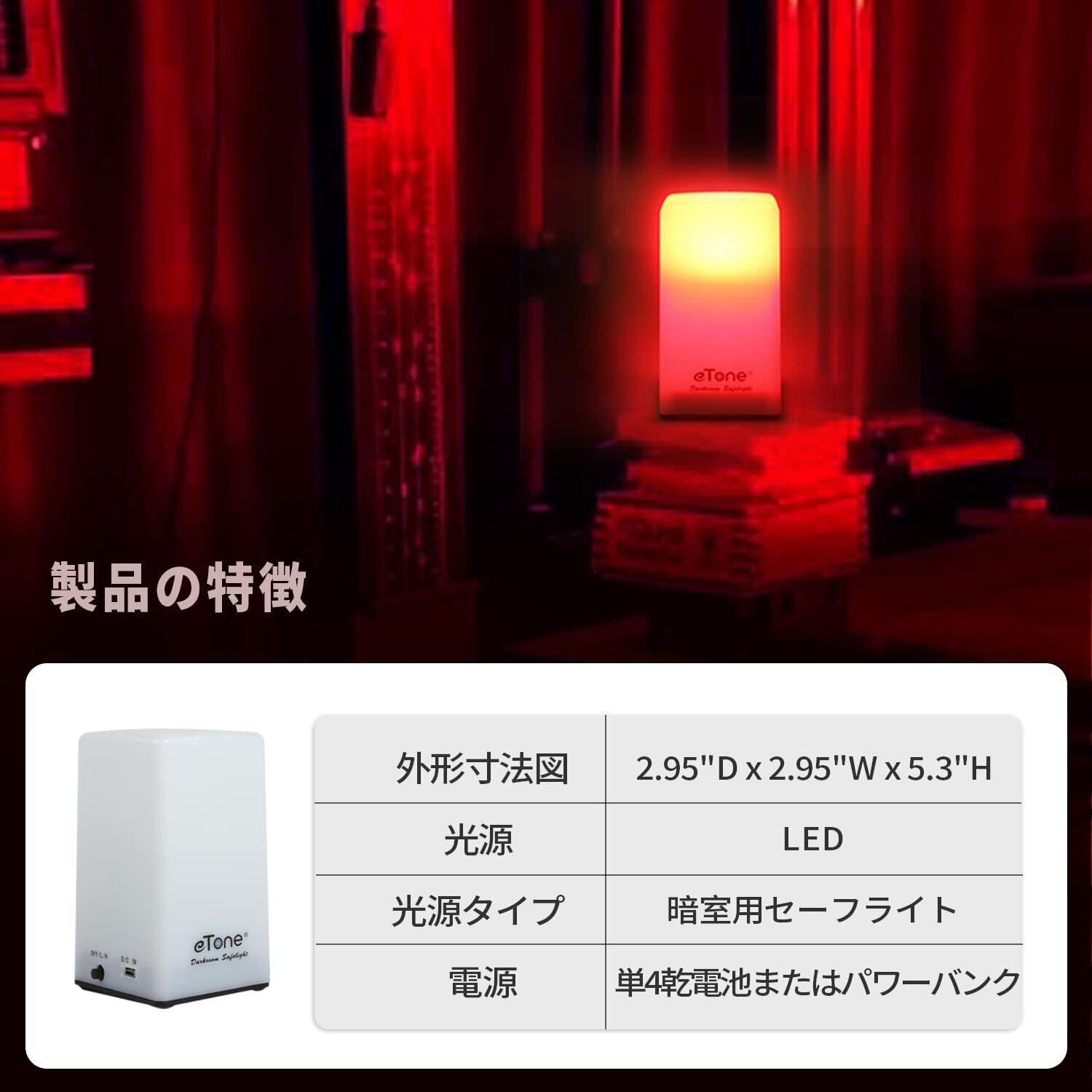 eTone Darkroomポータブルセーフライトランプ635nm波長、USBケーブル付き白黒フィルムおよび白黒印刷用紙の処理に適しています