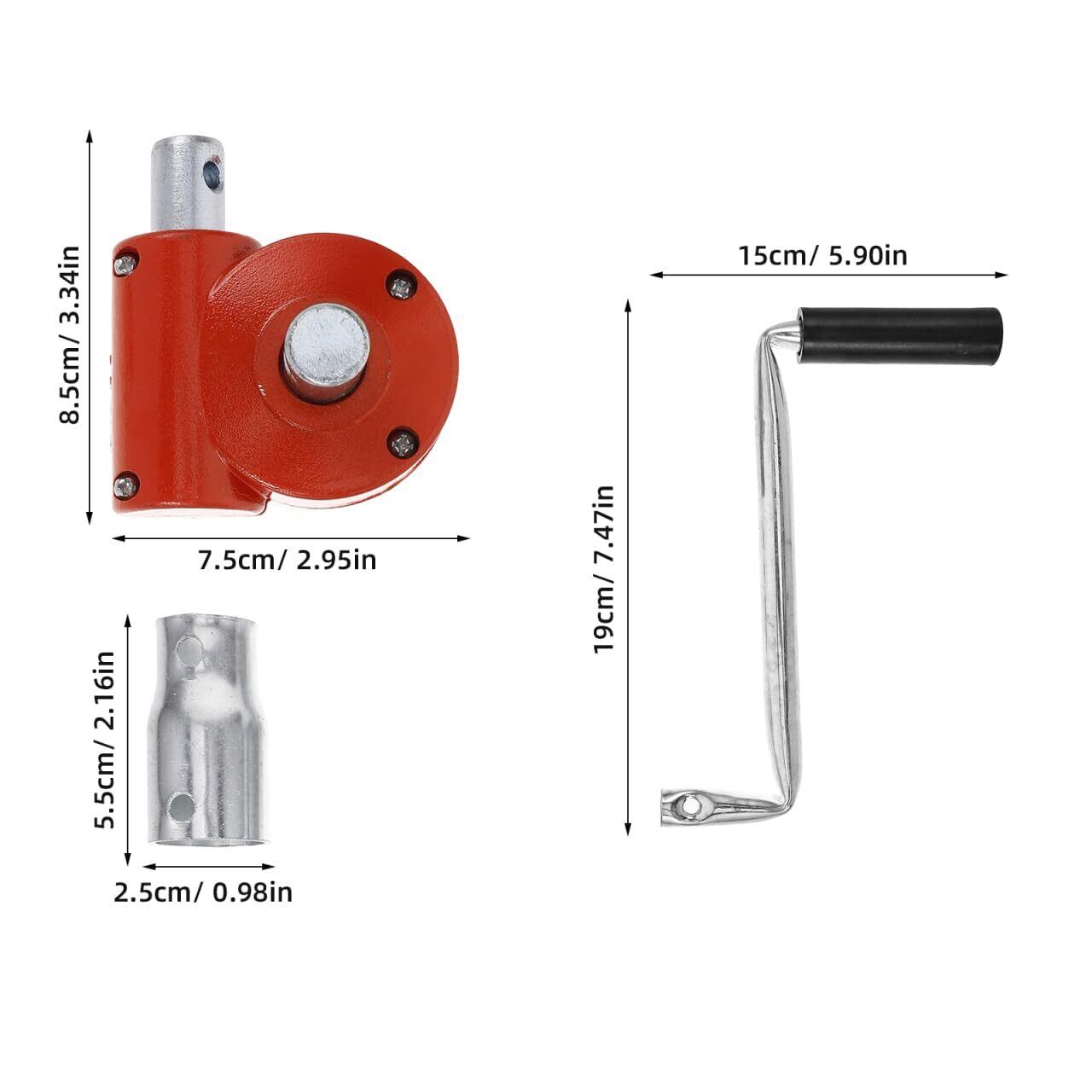 【届いてすぐ使える巻き上げ機フルセット】本体ギアボックス「約8.5×7.5cm」に加え、専用クランクハンドル「約19cm」、接続用ジョイント2個、固定用ボルト4本がすべて揃った、お得で実用的なフルセットです。