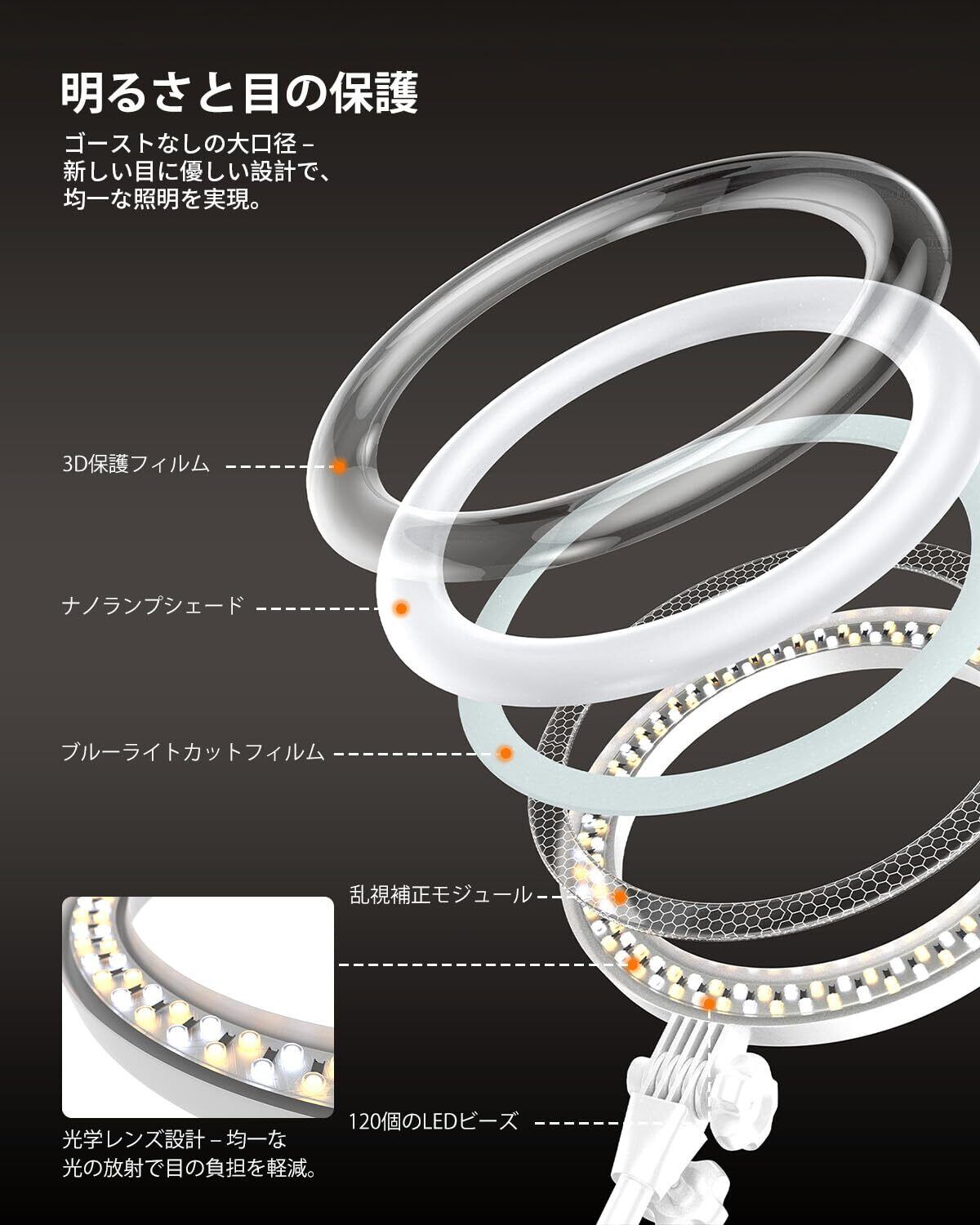 【USB給電&日本語サポート付き】 USBポート搭載のPC、モバイルバッテリー、ACアダプターに対応し、どこでも簡単に使える便利仕様。日本語説明書&3年間の製品付きで、初心者の方も安心。在宅勤務・メイクアップ・動画撮影に欠かせないアイテム。