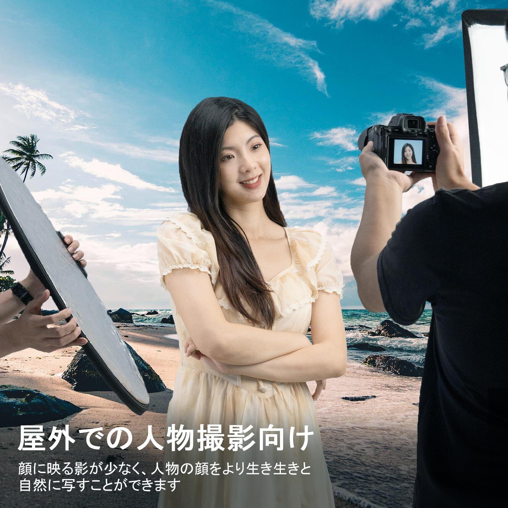 【様々なシナリオでの使用】白銀2in1レフ板は、スタジオ撮影、屋外や屋内のポートレートなどに適用します。光を反射、拡散し、光を自在に演出できます