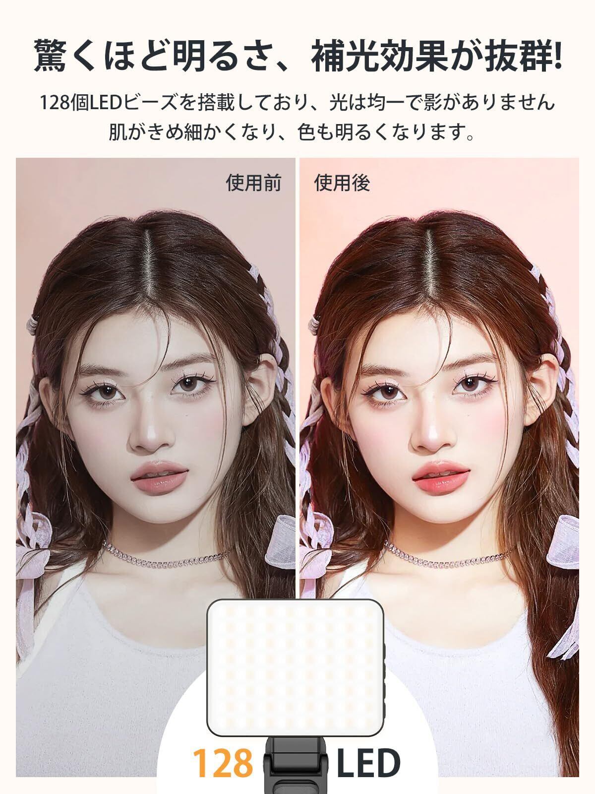 【素晴らしい補光効果】XJ77には128個のLEDビーズを搭載しており、非常に明るい輝度に達します。均一な発光で、影がありません。CRI90+の高演色性と3000k-6500kの色温度により、いろいろな照明ニードに対応して、撮影用ライトとして最適です。