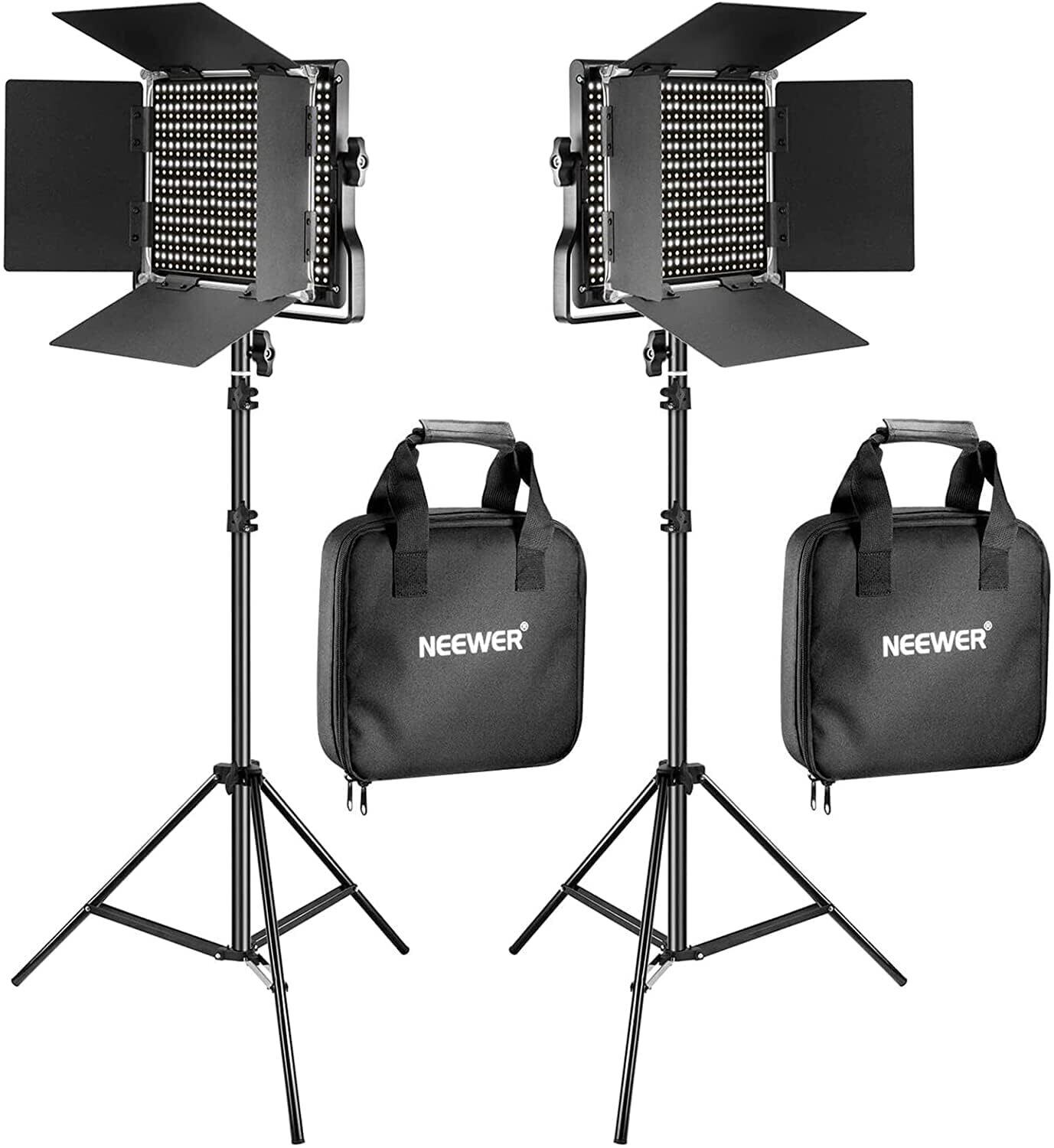NEEWER 2パック 660 LEDビデオライトとスタンドキット 撮影用ライト 40W 高輝度 CRI96+ 3300lux/1m 3200K-5600K色温度 二色 0-100%調光可能 Uブラケット、バーンドアと収納ケース付き スタジオ照明/生放送/動画/写真/商品/ポートレート/YouTube撮影用