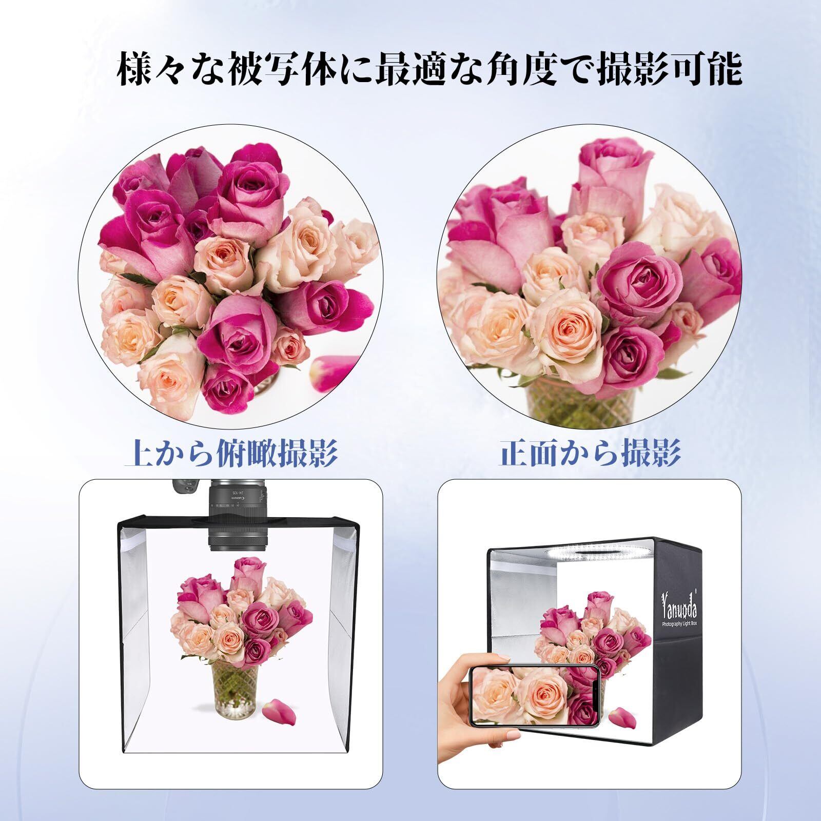 撮影用ボックス 40×40×30CM Type-C給電 180個の高輝度LED 3色温度調光 (CRI≥95) 折りたたみ式 撮影ブース 6色背景紙付き 収納便利 物撮りボックス 商品/食品撮影