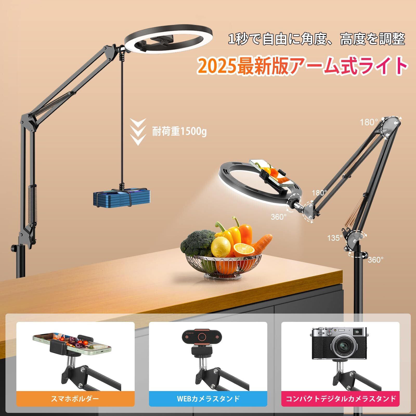 Evershop アーム式俯瞰撮影 照明 リングライト スマホスタンド 真上から撮影用ライト 動画撮影 メイク用ライト 配信用ライト パソコン ledライト カメラ pc zoom Youtobe TikTok 手元 物撮り オンライン面接 ウェブ会議 化粧