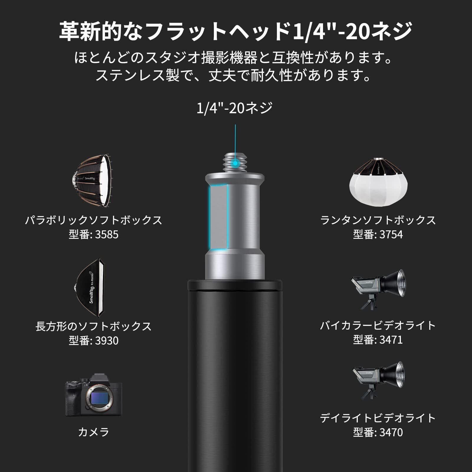 【複数使用方法】スタビライザー、フラッシュライト、ソフトボックス、リフレクター、リングライトなどの写真機材との相性が良く、さまざまな写真やビデオの撮影状況に対応できる、ステンレス製の1/4"スレッドアダプターが付属しています。