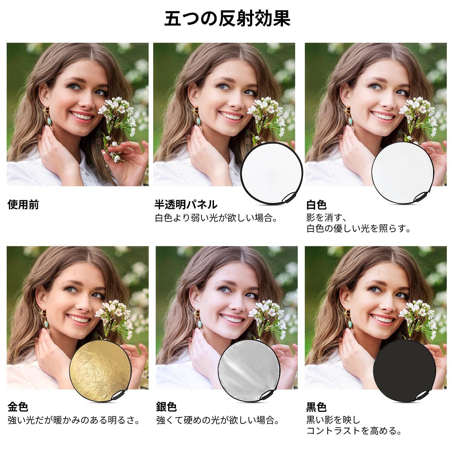 【1枚で5つの光線効果を実現】 K&F CONCEPT 撮影用レフ板には、ゴールド、シルバー、ホワイト、ブラックと半透明のカバーとディフューザーが配置され、あなたの撮影に異なる光線効果を提供します。