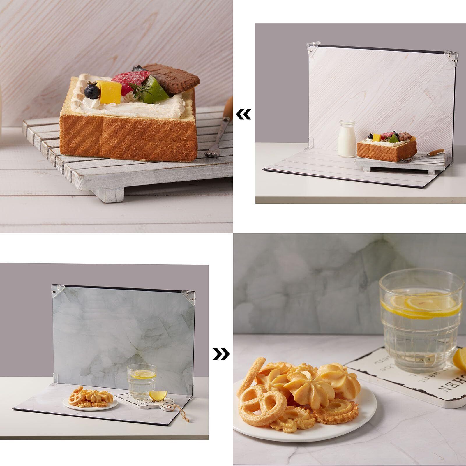 【小さな製品の撮影用に設計された背景ボード】BYSTONEの背景板を写真撮影に使用すると、写真がよりプロフェッショナルになり、人目を惹くことができます。食品、ジュエリー、化粧品、その他の小さな物に適しています。