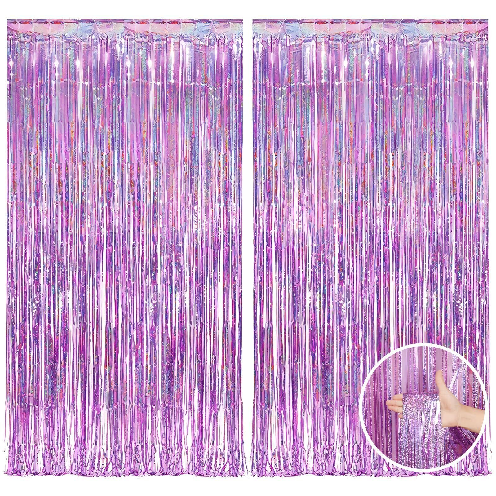サムコス 2個セット タッセルカーテン 100cm*200cm キラキラ フリンジカーテン 明るい光沢 パーティー 装飾 誕生日 忘年会 結婚式 お部屋の装飾 (A,ピンク)