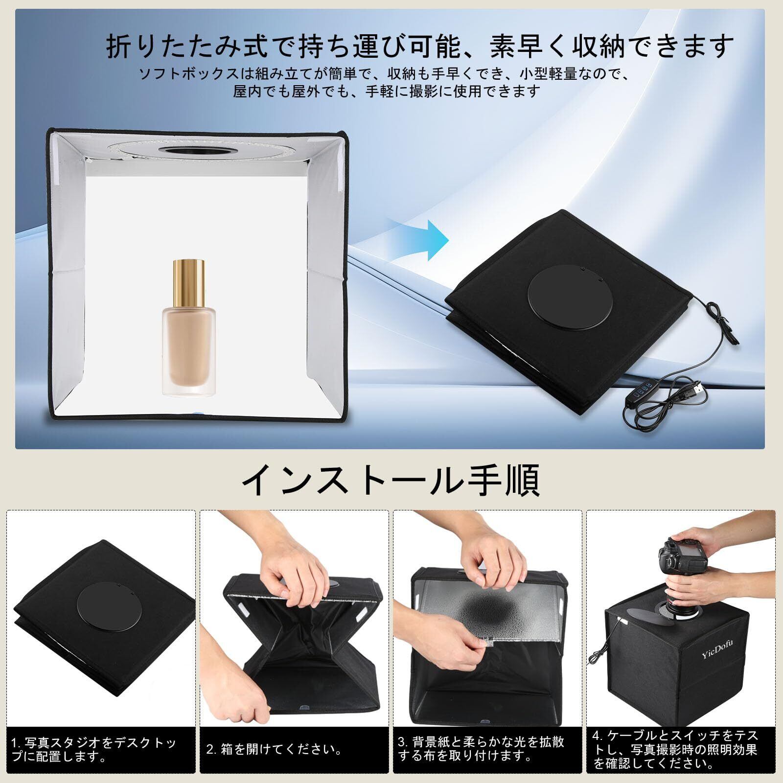 【オールインワン撮影ソリューション】31cmのライトボックス、PVC製背景6枚(黒/白/赤/青/黄/緑)、内蔵LEDライトが付属するキットです。やEtsy出品者や小型商品の撮影に最適です。