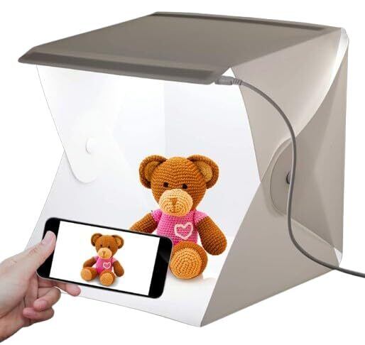 この撮影ボックスは、スマホでの撮影を手軽にプロフェッショナルな仕上がりにするためのアイテムです。LEDライト付きで、明るさを均一に保ち、商品の魅力を最大限に引き出します。折りたたみ式で簡単に組み立てられ、USB給電でどこでも使用可能です。付属の黒背景布を使えば、オークション用の写真も簡単に撮影できます。コンパクトで持ち運びも便利なこの撮影スタジオは、初心者からプロまで幅広く活用できます。 フィギュアや模型、小物などの写真撮影に最適! 初心者でもスマホや一眼レフなど使って自宅でもプロ級の撮影ができます。 組み立て式なので、使わない時は折り畳んでコンパクトに収納可能です。持ち運びも楽です。 背景用の布は黒が付属し、白色と黒色背景の写真が撮影出来ます。 LEDを上部に1個配置しています。 【サイズ】22×24×24cm