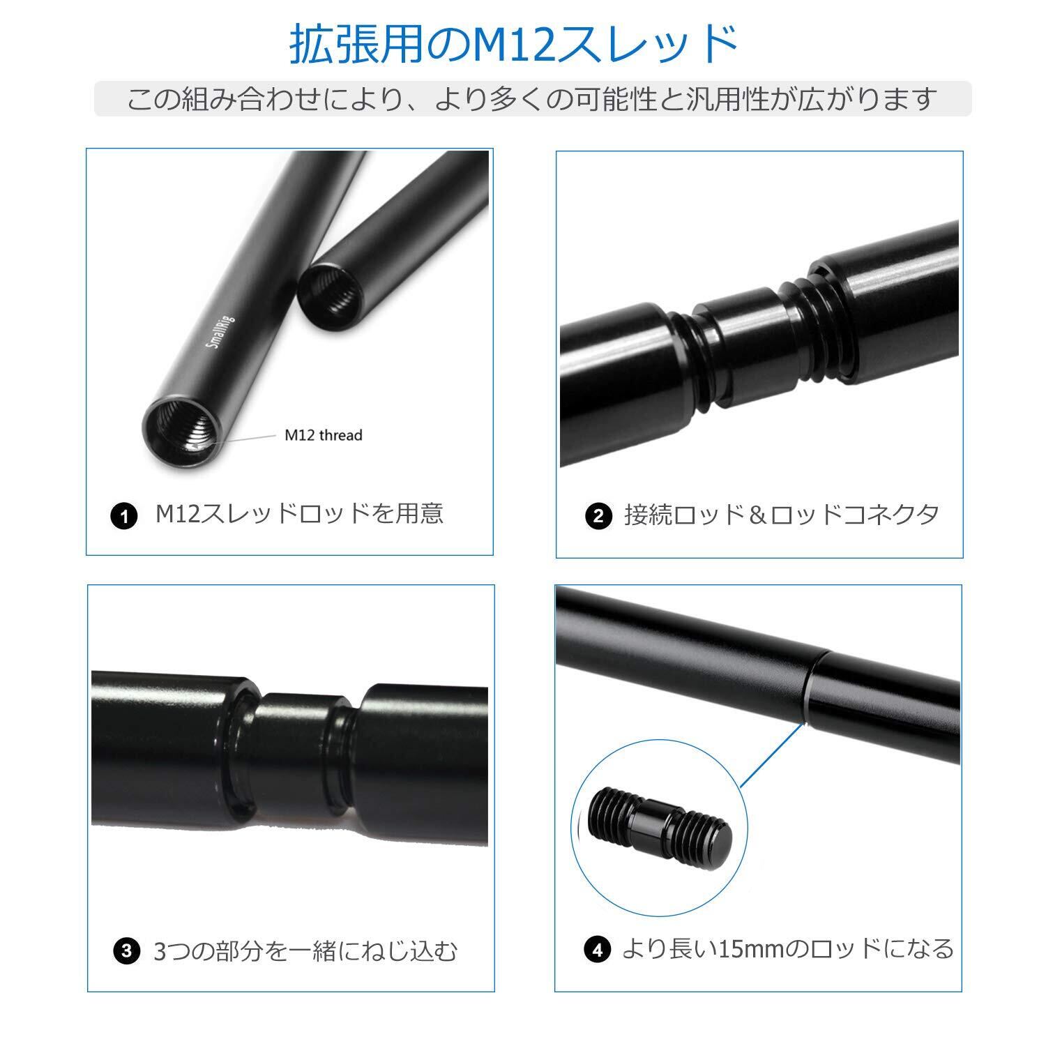 SmallRig 15mmロッドシステム アルミロッド M12ネジ穴 ブラック (2本M12-20cm/2本M12-30cmロッド/2本ロッド連結コネクタ)6本セット-1659