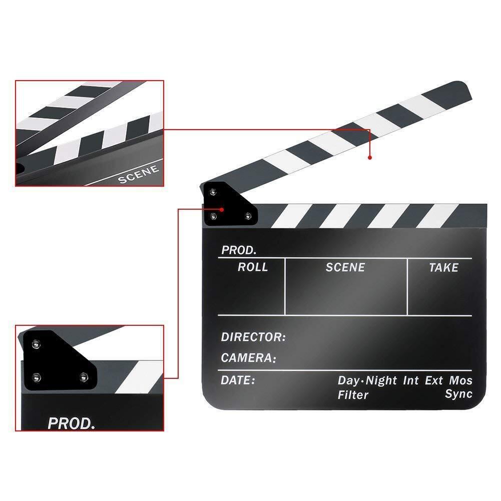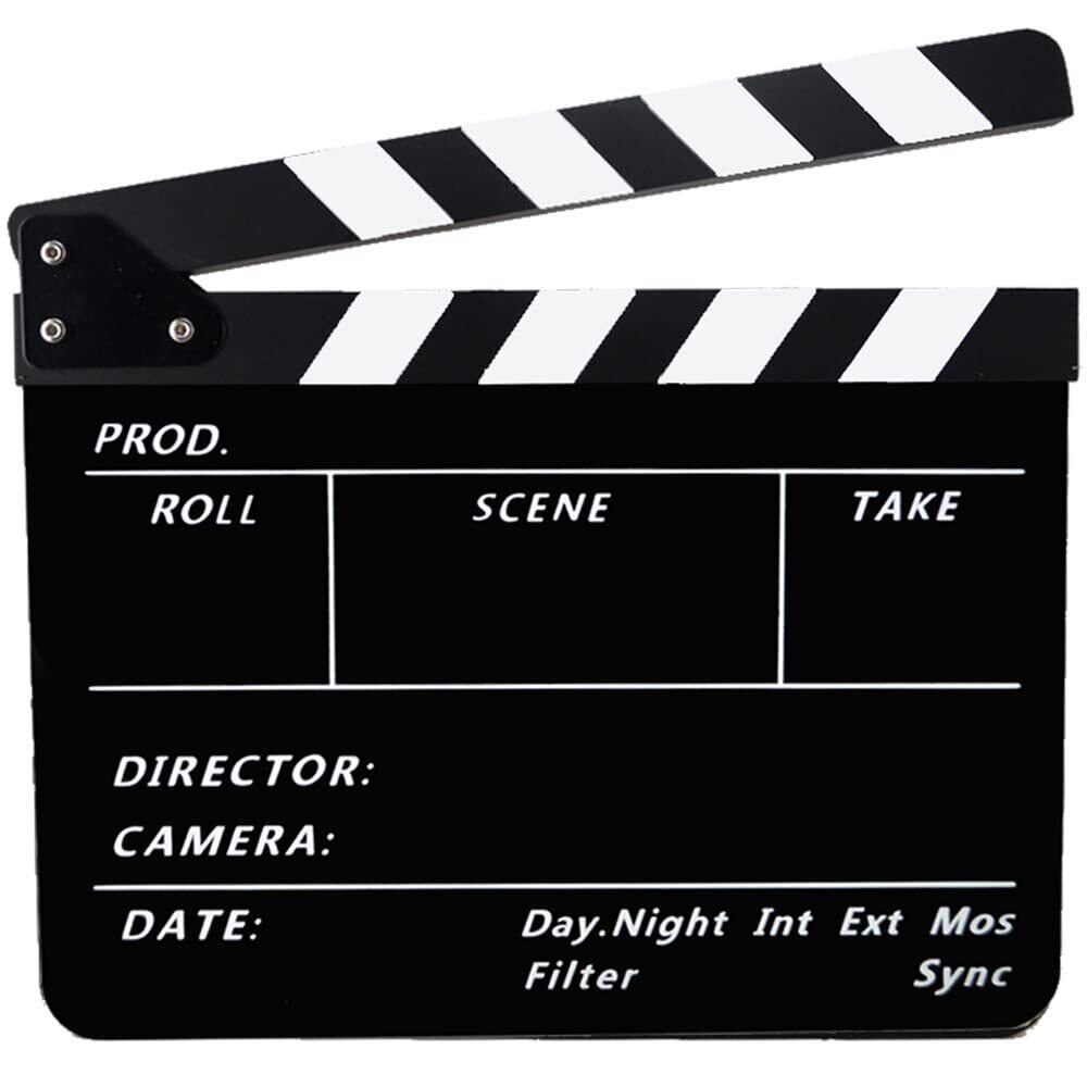 siawadeky カチンコ 映画 撮影 道具 映画フィルムクラップボード 映画監督 クラッパー 書き込み可能 カット アクションシーンボード アクリルフィルム クラッパーボード 映画 広告 写真 コスプレ 背景 撮影 小道具用 30x25cm