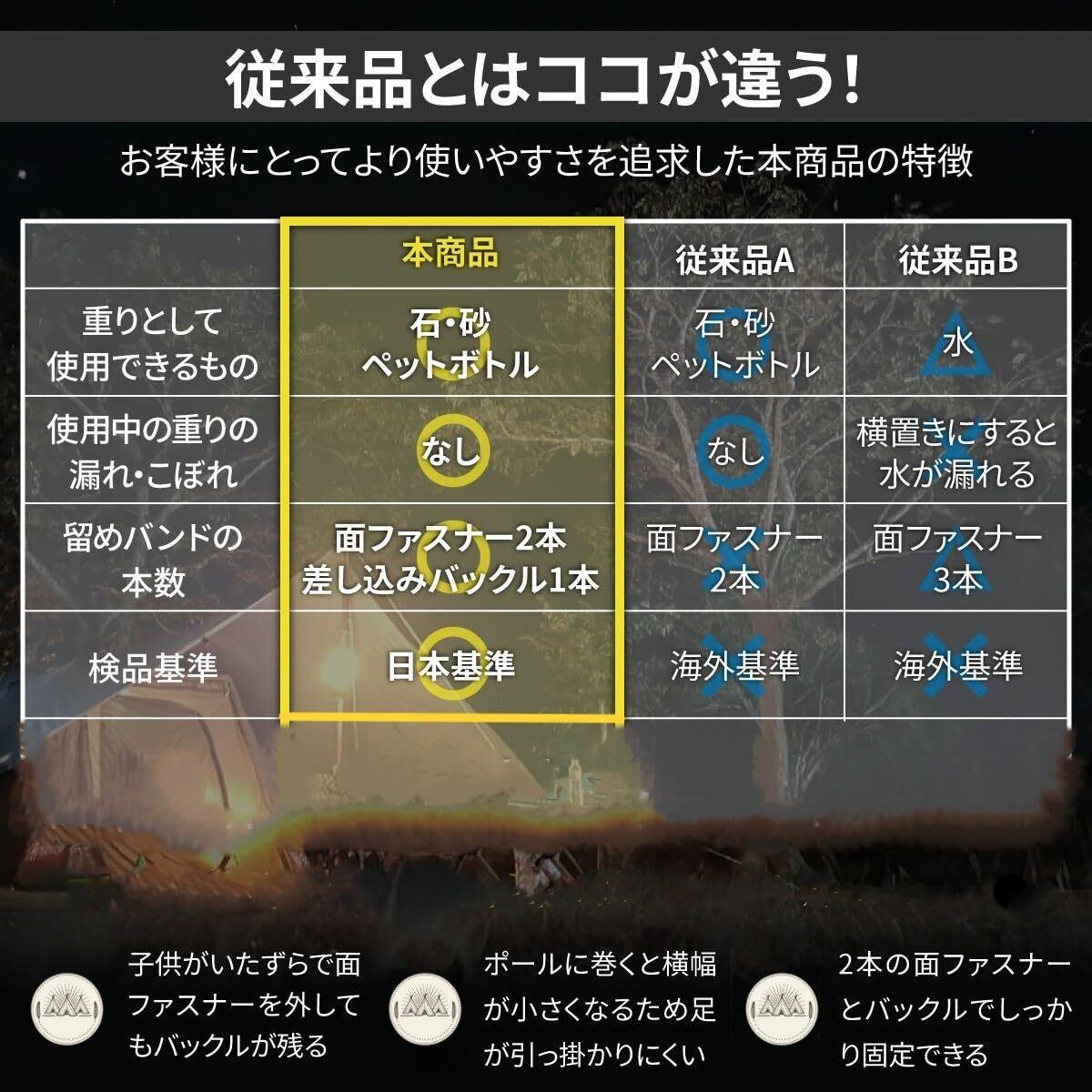 テント・ビーチパラソル・スタンド看板・のぼり・カメラ三脚・サッカーゴールなどを設営する際に欠かせないウエイトバッグです。足元にセットすると屋外で風が吹いても飛ばされる心配がありません。初心者の方でも使いやすいシンプルな仕様に仕上げました。一般的なウエイトバッグとは異なりサイズ感が大きく安定感があります。