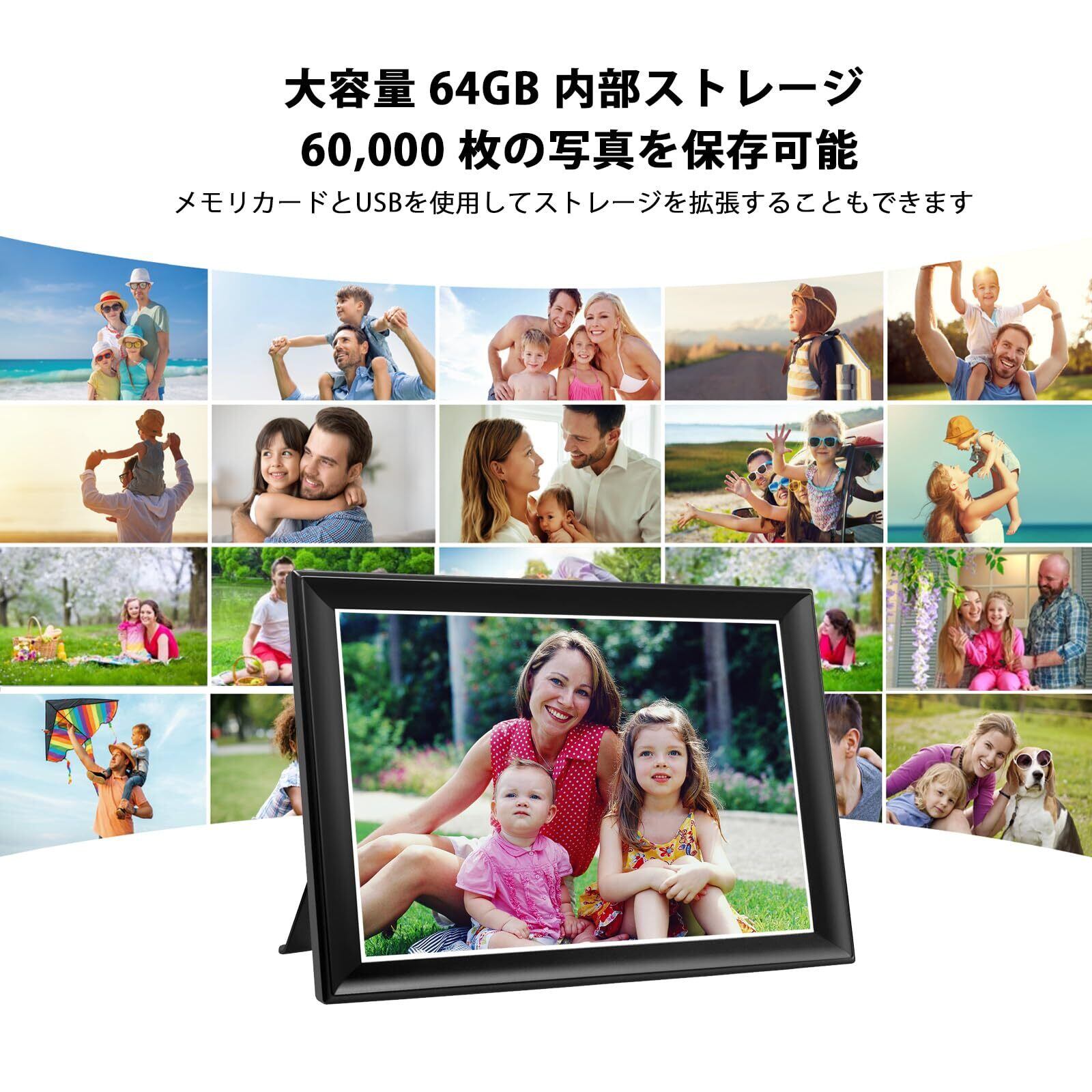 【写真やビデオを安全にプライベート共有 】 デュアルWiFi(2.4/5GHzネットワーク)により、世界中どこからでも "FRAMEO APP "を介して写真や小さなビデオ(最大15秒)を送信し、友人や家族は WIFIフレームで数秒以内にあなたの素晴らしい瞬間を楽しむことができます。64GBメモリ内蔵、USBドライブまたはSDカードでストレージを拡張できます。また、USBドライブやSDカードを使用して写真やビデオをインポートすることができます。