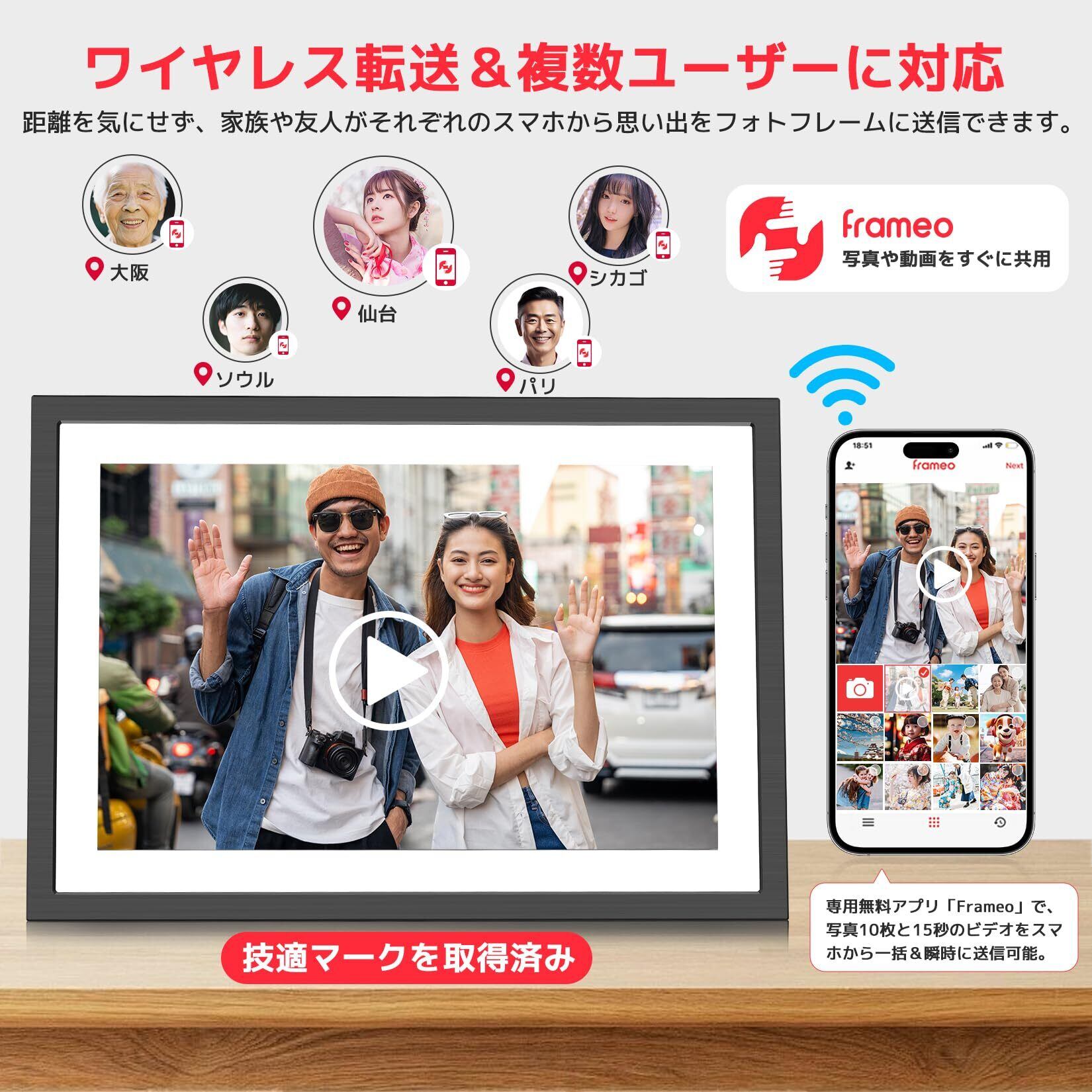 【高齢者でも簡単操作&Wi-Fi対応】 直感的に操作できるタッチスクリーンを採用し、機械が苦手な高齢者でも簡単に使えます。縦横の写真は自動で最適表示され、面倒な回転調整は不要です。さらにWi-Fi接続に対応しているため、離れて暮らす家族がスマートフォンから写真を送信すると、相框側では操作不要で自動的に受信・保存。おじいちゃん・おばあちゃんがいつでも最新の家族写真を楽しめる、心温まるプレゼントです。