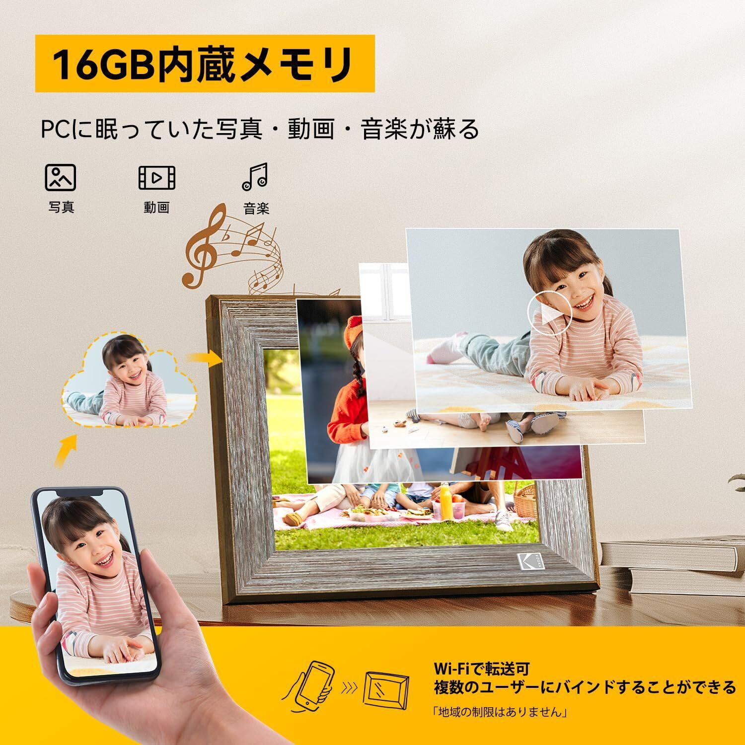 KODAK WiFi デジタルフォトフレーム 8インチ 木製 1024x768解像度 IPSタッチパネル操作簡単 32GB内蔵 最大128GB MMC/SDカード/USBに対応 カレンダー/時間/アラーム/天気などの生活機能付き 祖父母プレゼント 卒業祝い 桜 春の贈り物