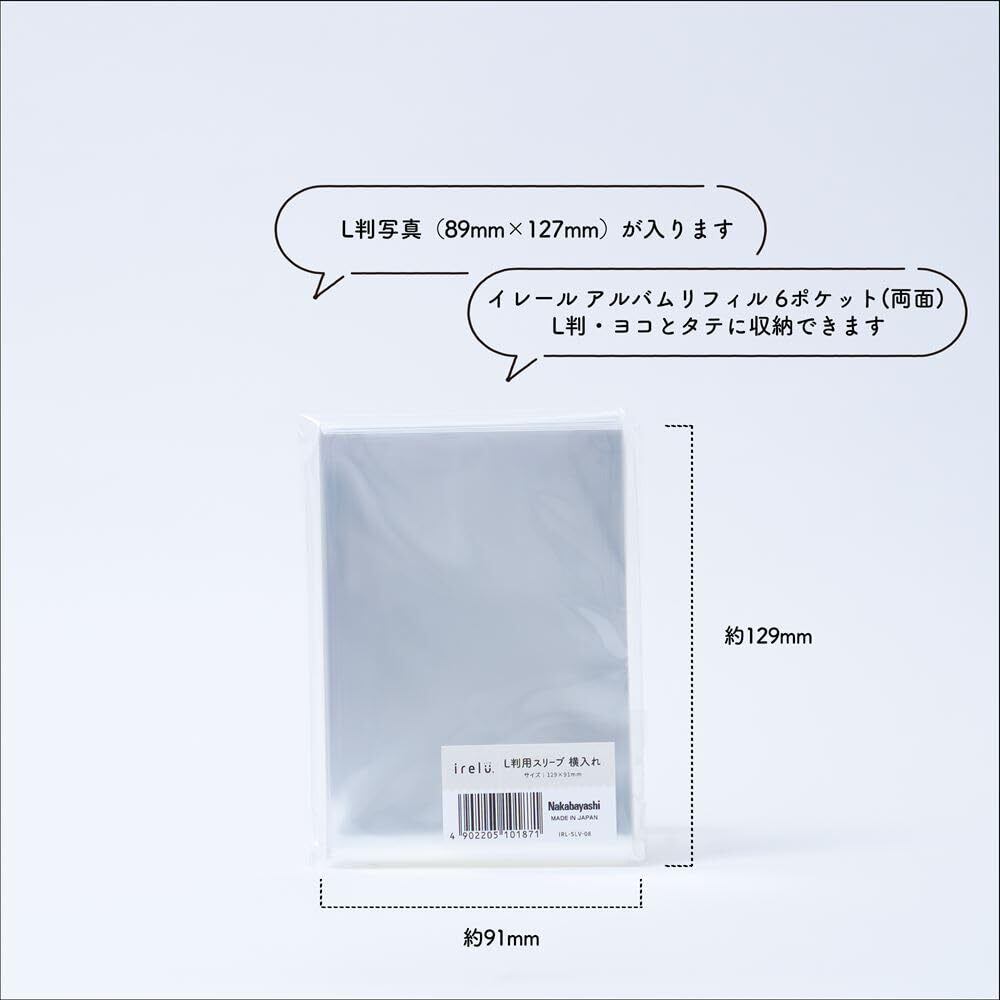 【イレール アルバムリフィルのポケット内寸に対応】「イレールスリーブ L判用横入れ」は、「イレール アルバムリフィル6ポケット(両面) L判・ヨコ/タテ」と組み合わせて使えるよう設計されています。スリーブに写真を入れたまま、そのままリフィルに収納できるので、「スリーブを入れるとリフィルに入らない」というよくある悩みを解消しています。イレールシリーズ同士の組み合わせなら、サイズが合うよう調整されていますので、安心してお使いいただけます。