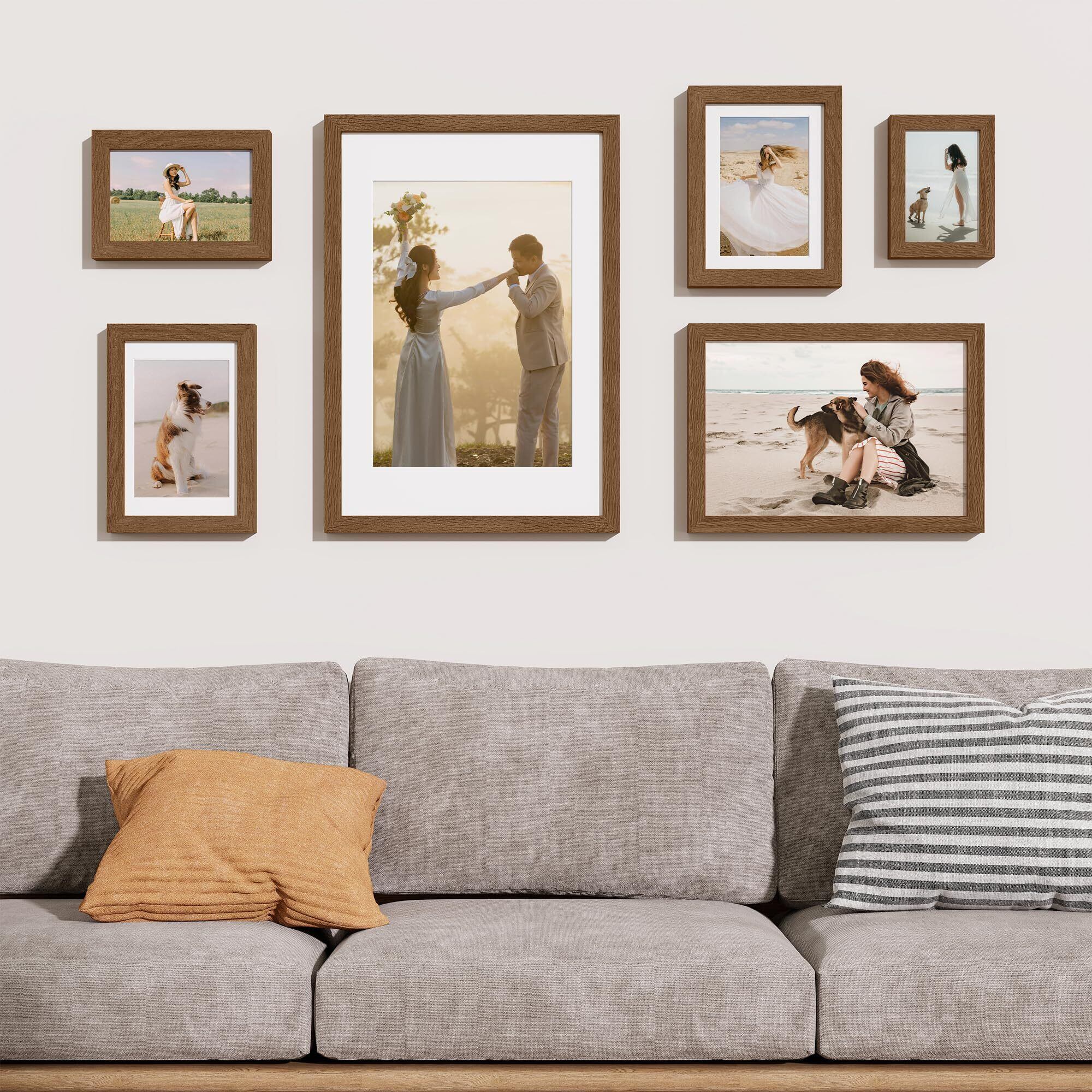 4x6インチフォトフレーム - ソリッドウッドウォールナットカラー 4x6 写真フレーム マット付き 3.5x5、4 x 6 フォトフレーム用 4 x 6 吊り下げ金具付属 10.2x15.2cm
