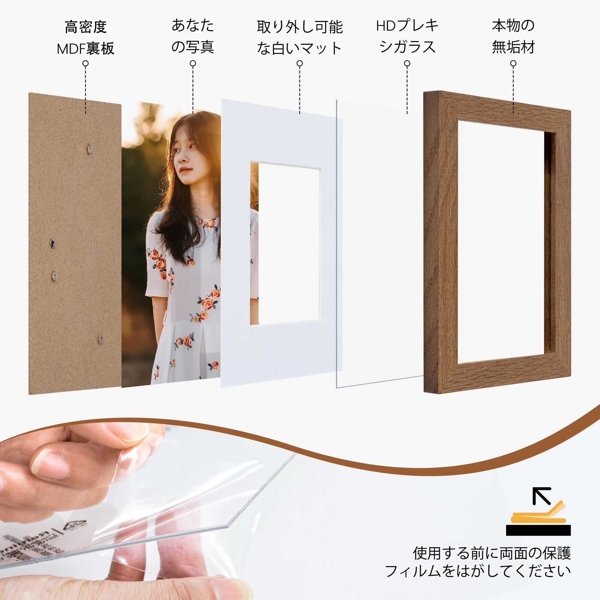 3.5x5の写真用マット追加:このフォトフレームは4x6の写真を飾ることができますが、3.5x5の写真を飾る場合は、マットを追加するだけで3x4.5の写真を飾ることができます。マットを外すと、3.5x5.5の写真を飾ることができます。