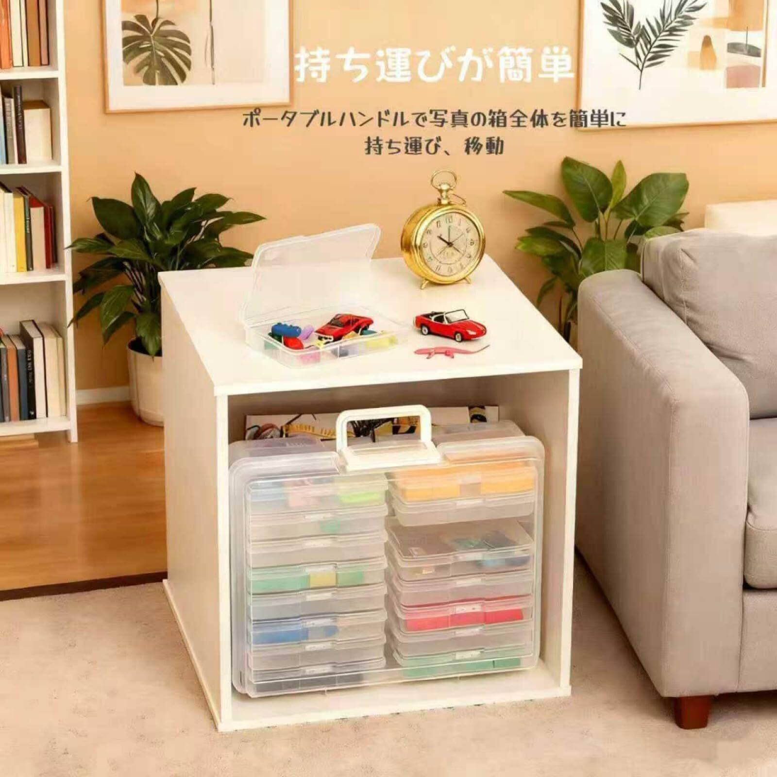 写真収納ボックス、取っ手付きポストカード収納ボックス、プラスチック製写真キーボックス,カード、ステッカー、スタンプなどを整理・保管できます(最大1,600枚の写真、10×15cmの写真に対応) (A)