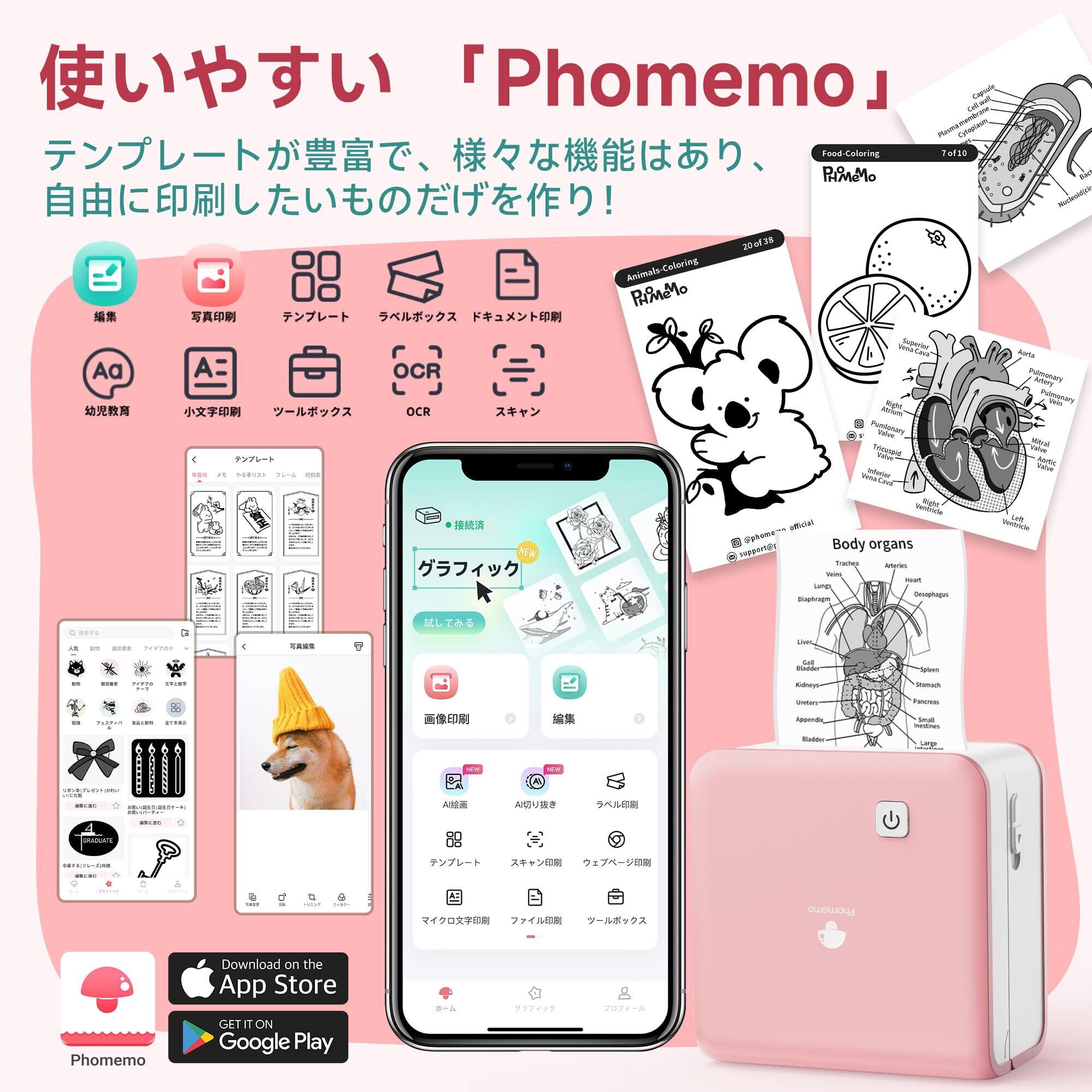 Phomemo P2S AIスマートアプリ ミニプリンター サーマルプリンター スマホ対応 シールプリンタ モバイルぷりんたー 漫画印刷機 ステッカー作り ポケットぷりんたー フォメモ Bluetooth接続 写真/メモ/手帳/家計簿用 学生用 自宅学習 多国言語対応APP 日本語取扱説明書 高級 プチギフト 誕生日 クリスマス おしゃれ プレゼントに最適 HD感熱紙3本巻付属 ピンク