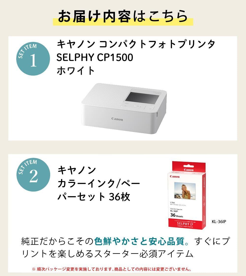 キヤノン スマホプリンター セルフィー CP1500 ホワイト Wi-Fi対応 昇華型 コンパクト写真プリンター 用紙36枚 セット