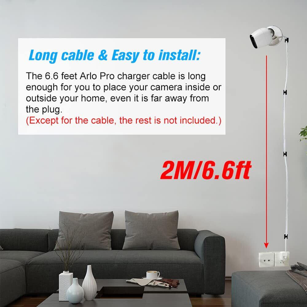 長いケーブル&簡単にインストール:あなたの家の内側または外側にあなたのカメラを配置するのに十分な長さ6.6フィートのArlo Pro充電ケーブル。 micro USB保護カバーの後部を開き、USBケーブルをArlo Proの穴に差し込むだけです。