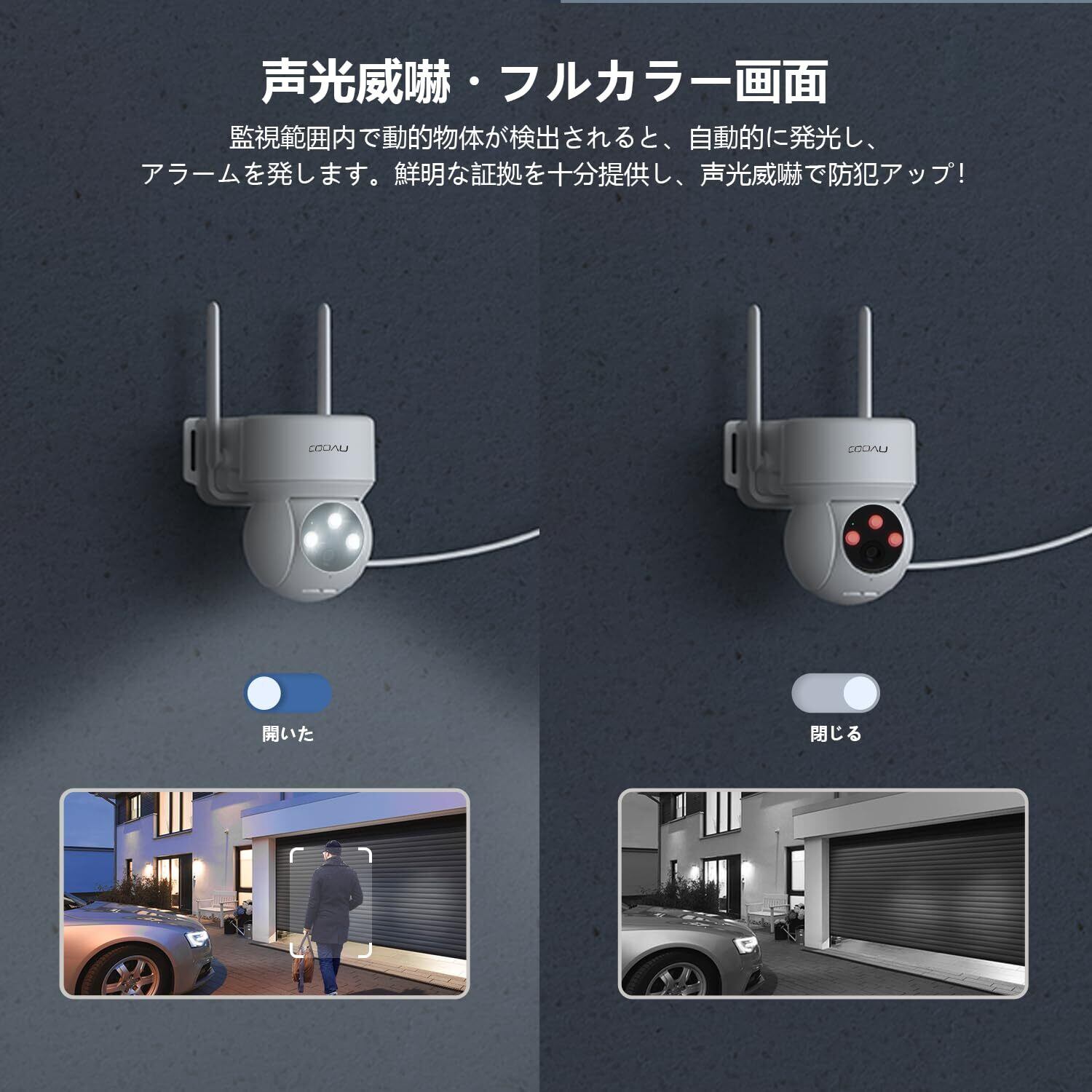COOAU 防犯カメラ 屋外 ワイヤレス/wifi 300万画素/1296P 監視カメラ PTZ機能 360°広角撮影 常時録画 検出エリア設定 人体検知 発光威嚇 自動追跡 双方向音声 家族共有 IP66防水 遠隔操作 警報通知 玄関/店/自宅見守り/ネットワークカメラ Ptz SDカード/クラウド保存 (白) (3MP)