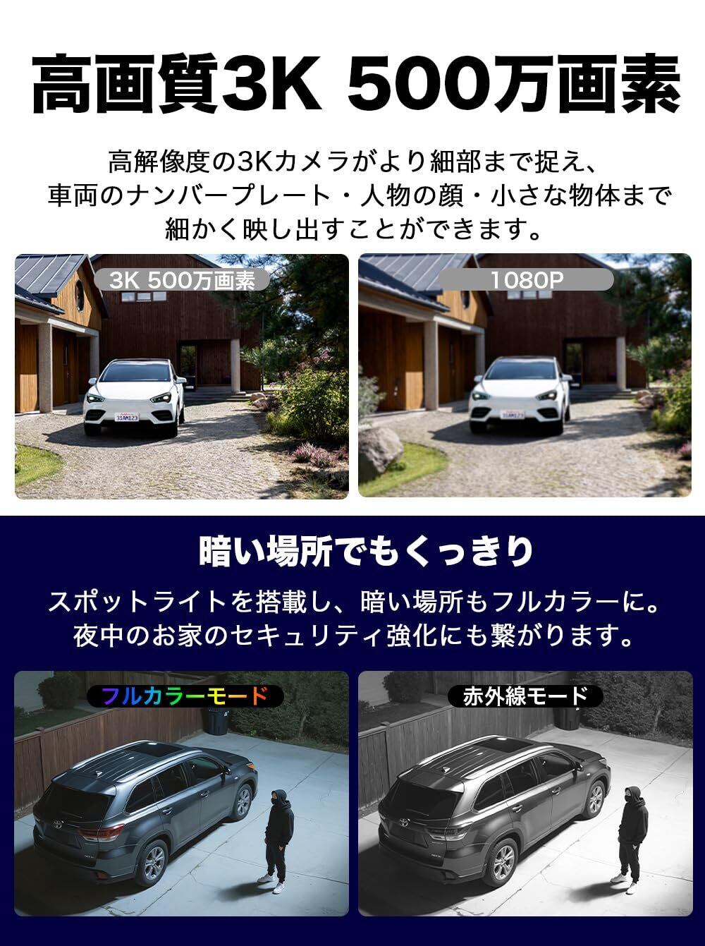 ✨【3K高画質・500万画素】3K 500万画素の高解像度で、昼夜を問わず細部までクリアに撮影。建物の周囲や出入口など屋外エリアを細部までクリアに記録し、セキュリティ対策や見守りに活躍します。