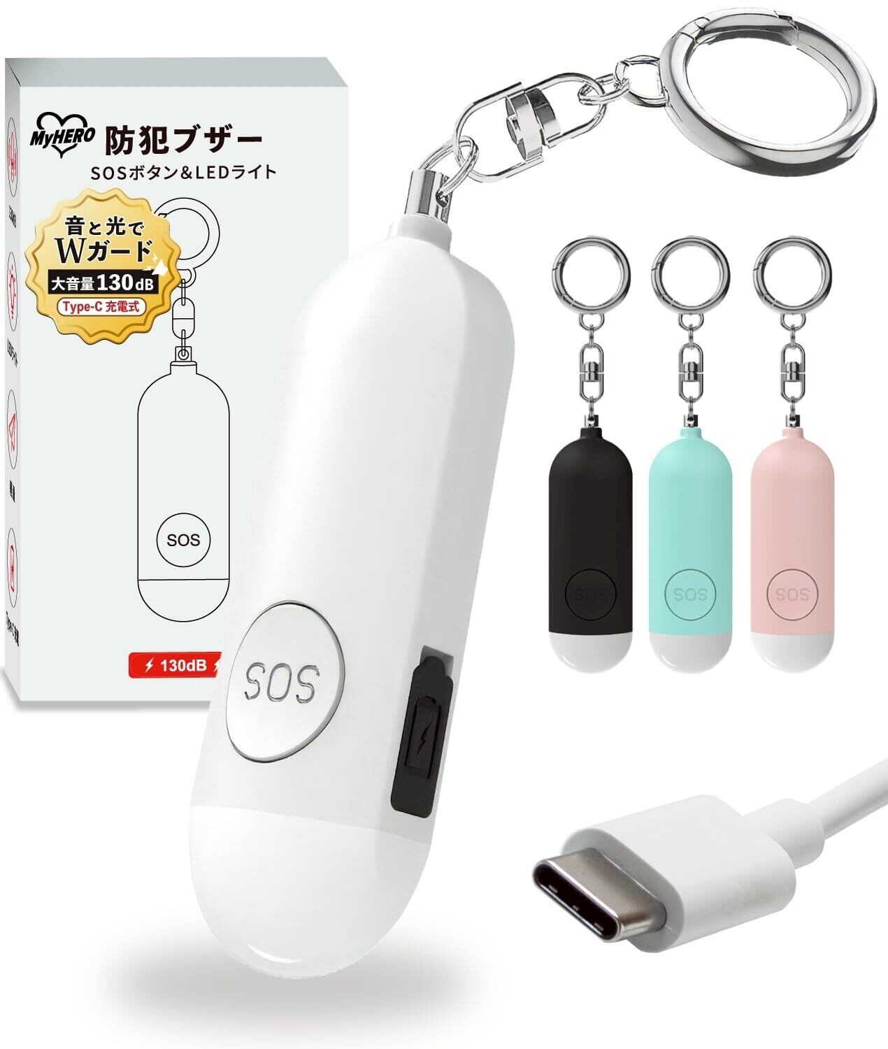 防犯ブザー 未使用充電持続 充電残量アラーム Type-C充電 130db LEDライト 防水 小学生 大人 男の子 女の子 ランドセル ドア玄関周り 防犯グッズ