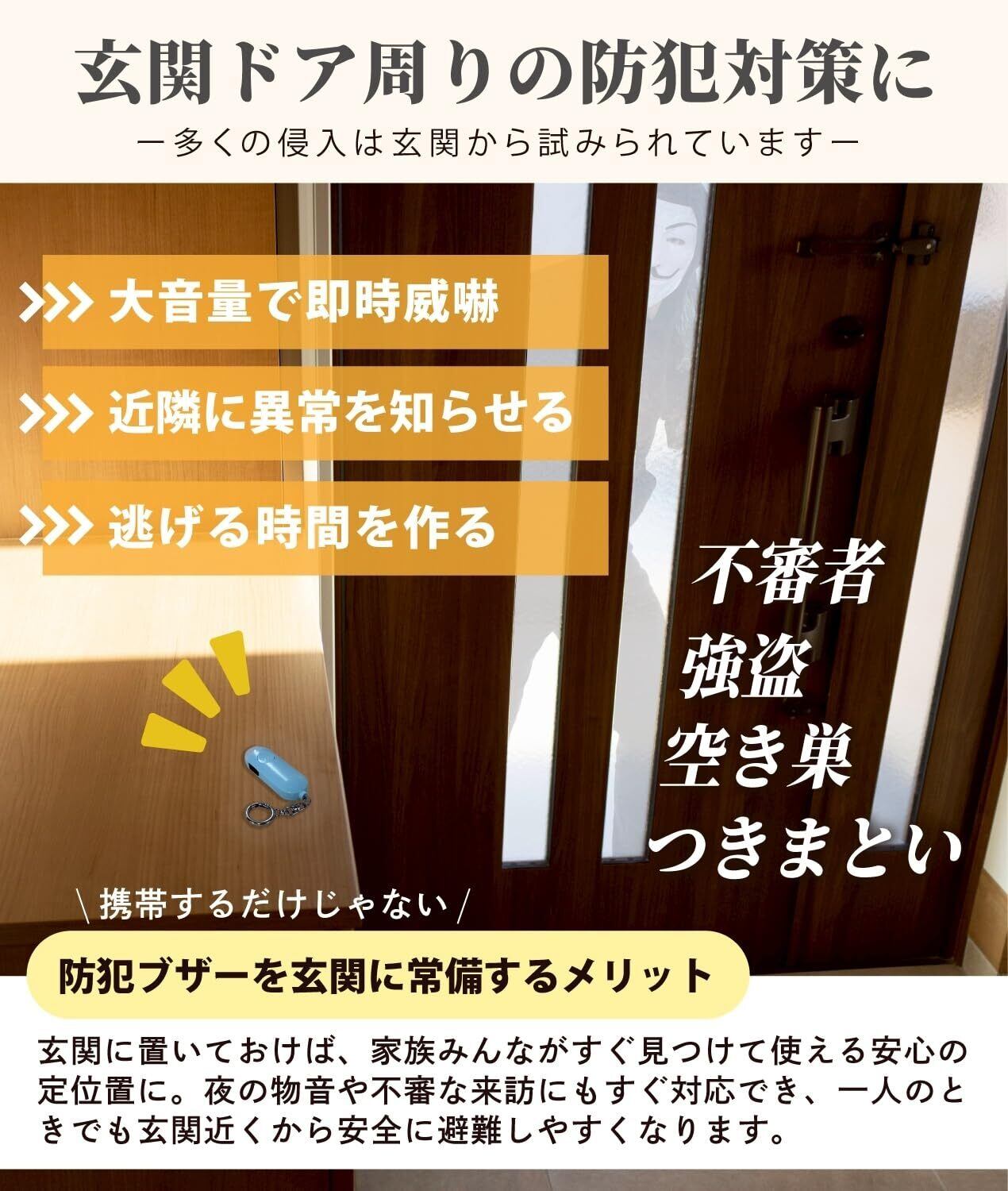 【もしもの時に、すぐ響く安心】簡単な操作で非常に大きな音を発する 防犯ブザー です。本体下部にワイドなLEDライトが付いているので音と光のダブルで緊急時に周囲の人々の注意を引き、他者に異常を伝える 防犯アラーム となります。手軽なのに効果的な 防犯 防災 対策として 小学生 の 男の子 や 女の子 、 大人もご利用頂けます。
