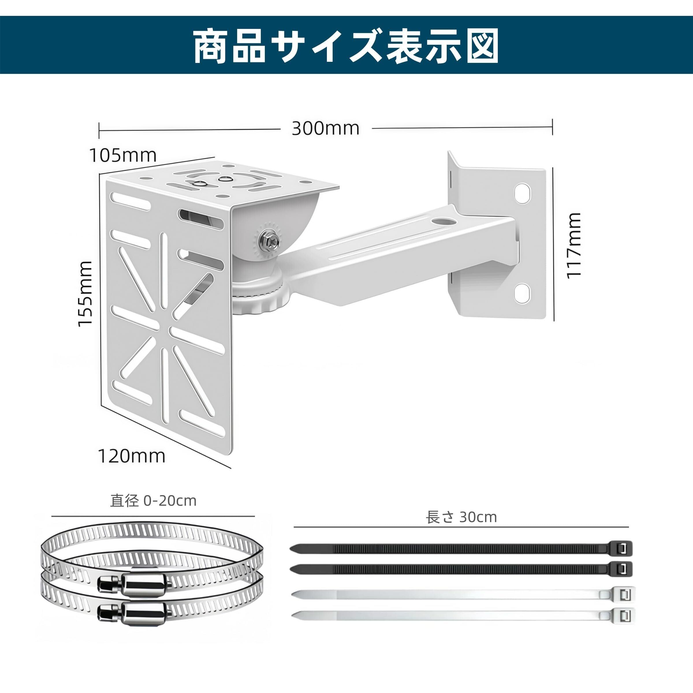 高耐久性構造 安定支持:耐用性に優れた素材で製造,最大 8kg の防犯カメラを長期間安定して支持。振動や外力に強く,監視機器の脱落リスクを低減します。