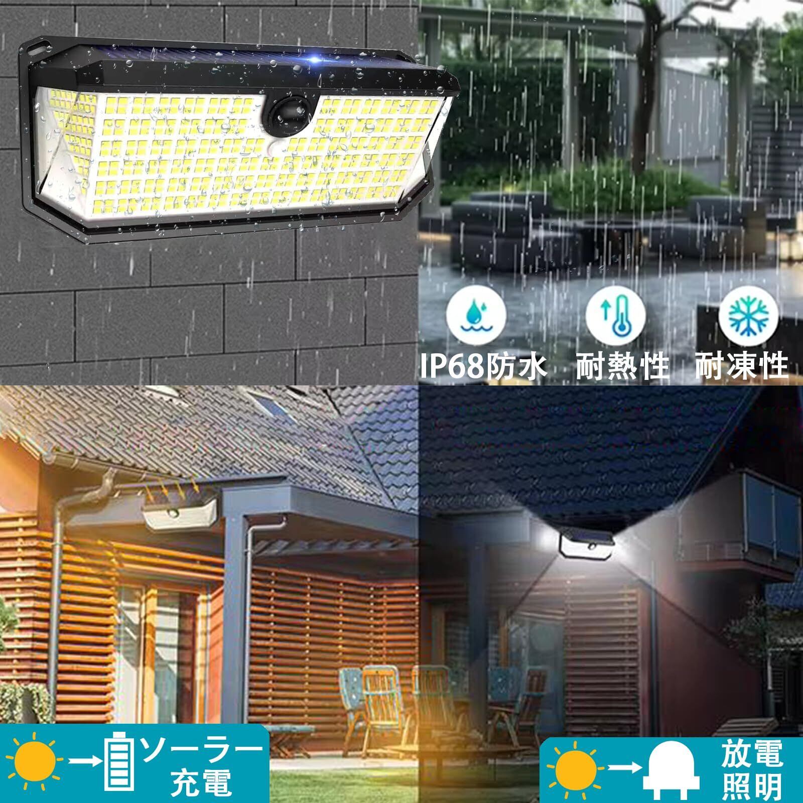 【ソーラーセンサーライトIP68防水&取付簡単】この屋外用ソーラーライトはIP68防水防塵仕様で、雨・雪・霧などの悪天候にもソーラーセンサーライト本体を損害しません。ソーラータイプ式なので、配線無し、どこにでも設置できて収納もしやすく、女子でも簡単に設置可能です。 【12ヶ月】本製品については何かご不明な点がありましたら、ぜひお問い合わせください。お客様に安心してお使いいただくために、ご購入日から間のサービスを提供いたします。