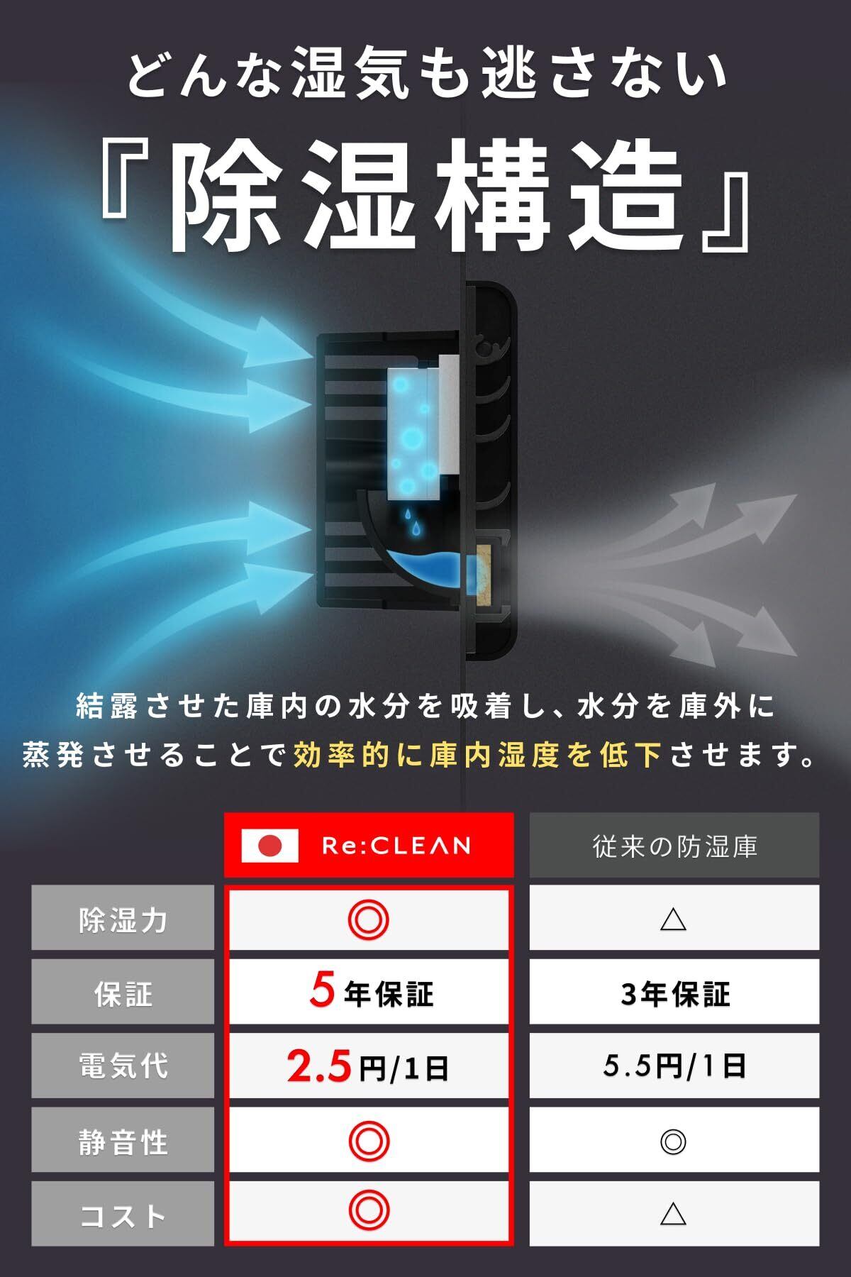 リクリーン 防湿庫 30L 5年 ドライボックス カメラ収納ケース カビ対策 鍵付き (通常, 30L/デジタル湿度計)