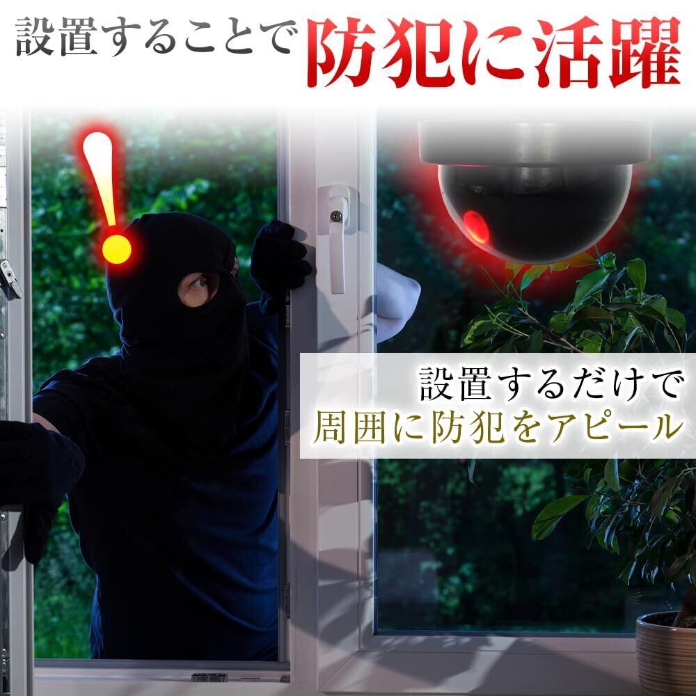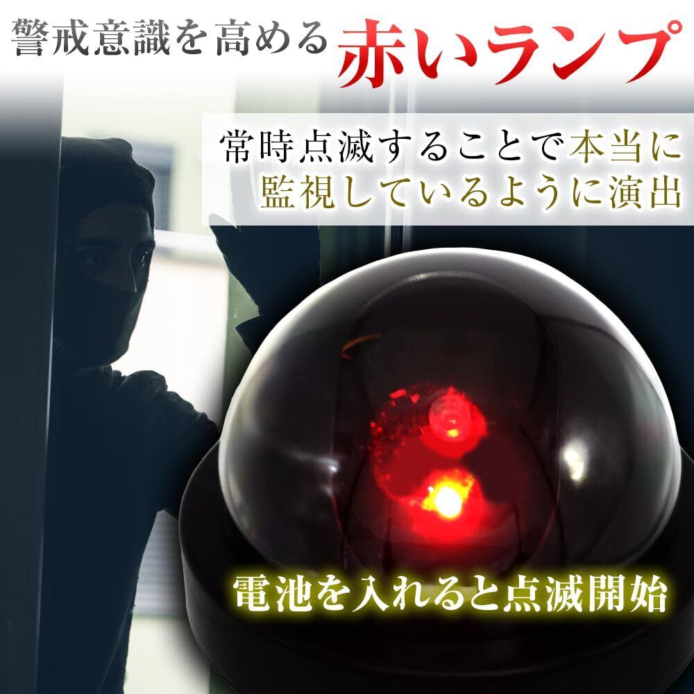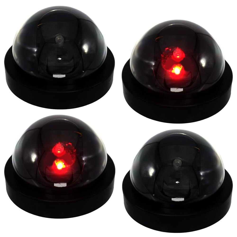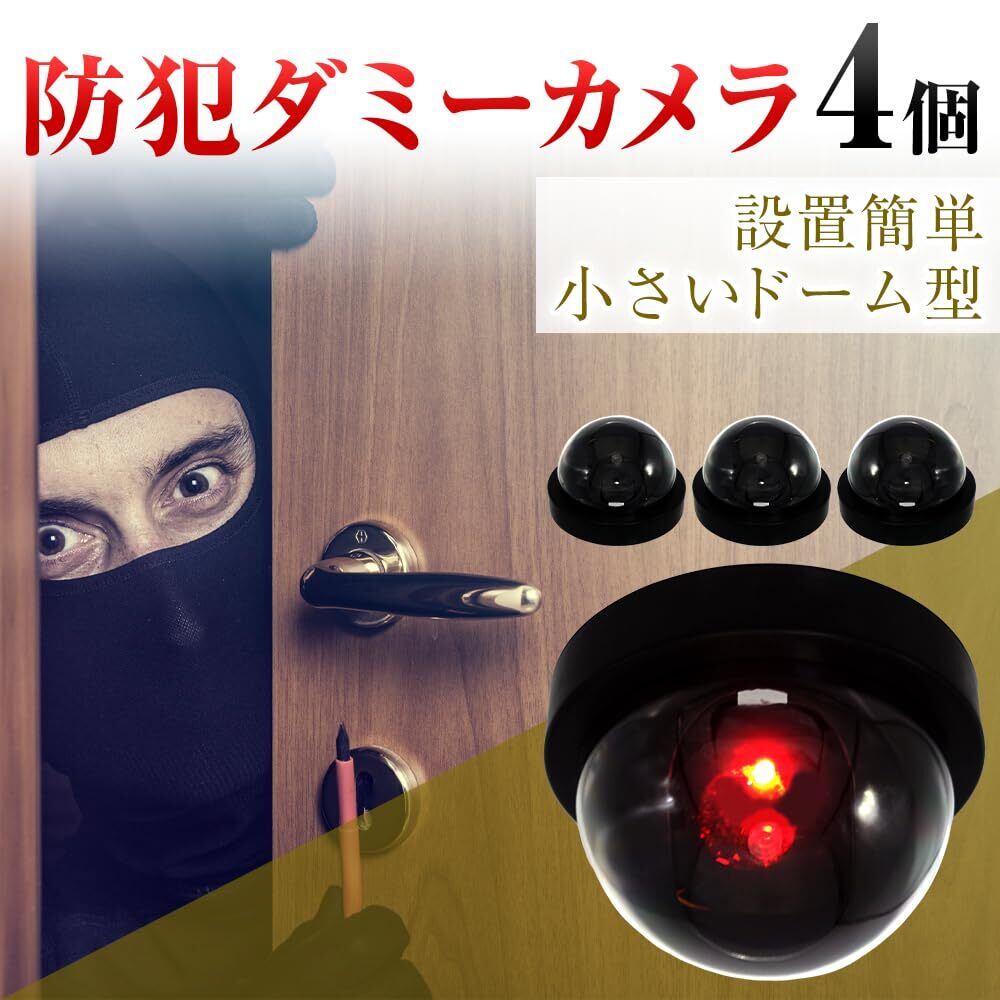 防犯対策用ダミーカメラ ドーム型 4個セット 取り付け工具付き LEDライト搭載 常時点滅 電池式 天井固定 玄関周り 店舗内