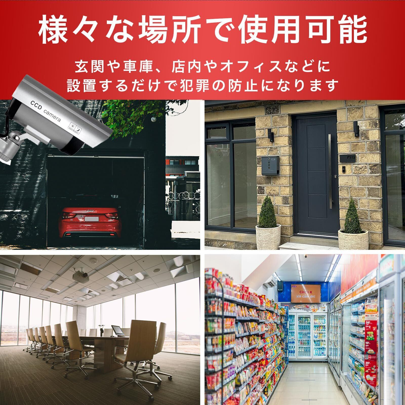 ダミー防犯カメラ 2台セット 屋外対応 赤色LED点滅 360°調整 電池式 取付簡単 ステッカー付 (2)