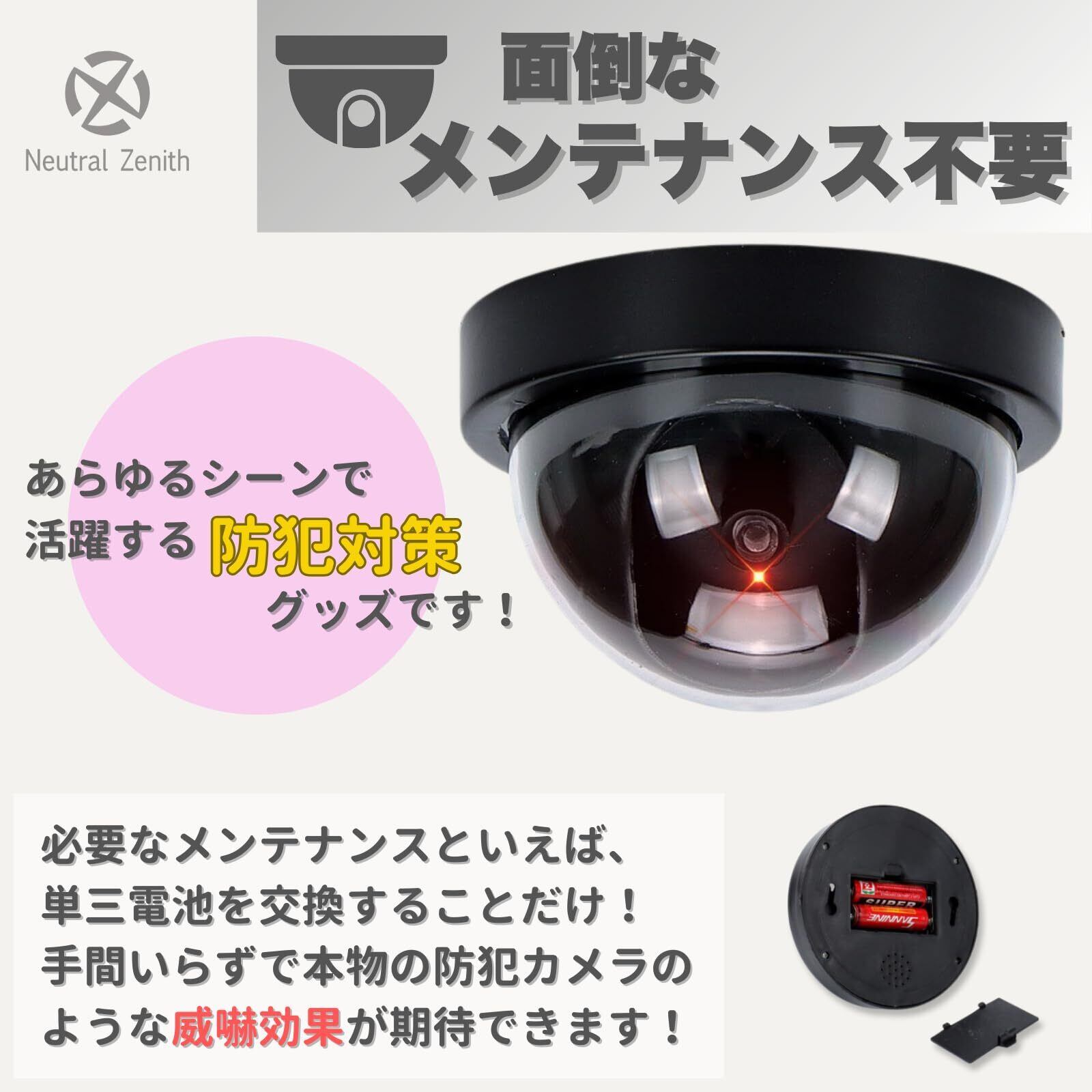 【メンテナンスが少ない】ダミーカメラは機械的な動作がないため故障のリスクが低く、長期間メンテナンスを必要としません。電池交換さえすれば問題なくご使用になれます。