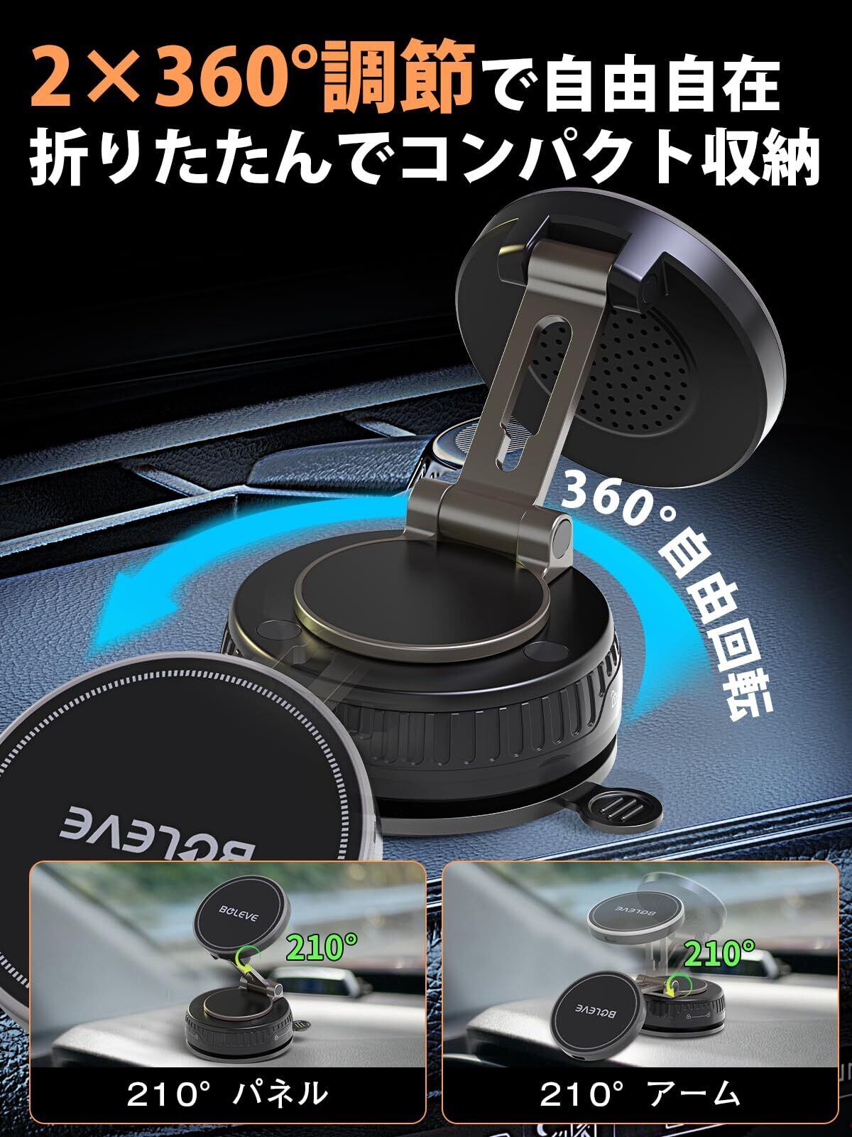 スマホホルダー 車 ワイヤレス充電 マグネットMagSafe 車載ホルダー超強N55磁石 折りたたみ式 カー用品 片手操作iPhone 17/iPhone 17 Pro/iPhone 16/Sony/Galaxy/HUAWEI/Google/その他Qi機種