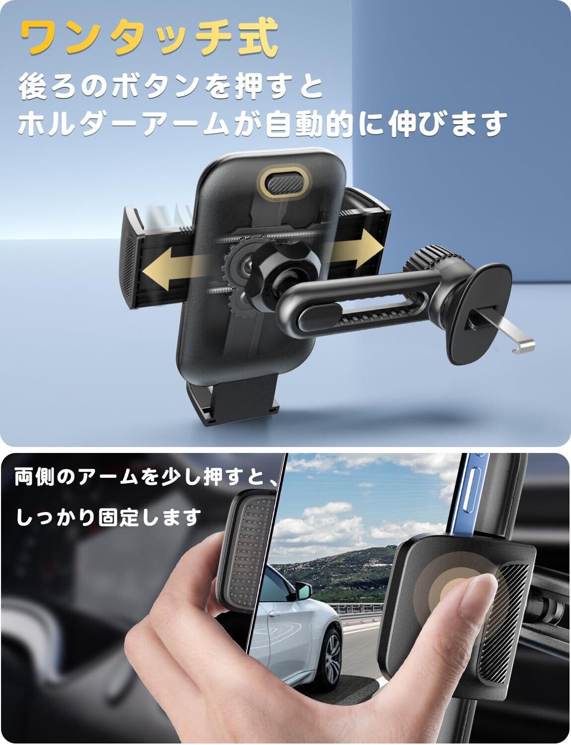 2024年に車載ホルダー新型モデル爆誕!✨✨・【スライドレール装置➤360°全方位調整!➤利便性抜群】 市販の車載ホルダーは、思い通りの長さと角度に調整できず、安全運転につながる可能性がある。より独自開発された革新的な車載ホルダーはスライドレール装置を採用しており、長さ、方向や角度などを自分好みに自由調整可能です。360°全方位調整可能で、幅広い可動域が実現され、運転中の全然視野の妨げにならない!【ノンブロッキングデザイン】独創設計のおかげで、お使いのスマホをa/cの風量 (スマホの寿命にダメージを与えません) の影響を回避し、車内のエアコンがもたらす快適さをさらに得るのに役立ちます (空気の流れを妨げません)。