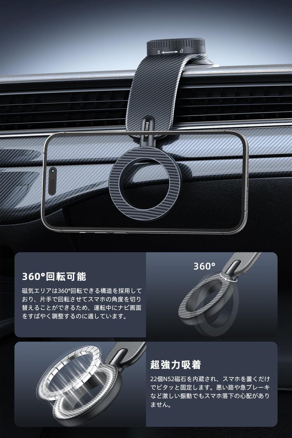 超強力吸着:高品質な22個N52磁石を内蔵し、持つ吸着力は非常に強力な車用スマホホルダーです。車内の揺れや衝撃によるスマホがしっかりと安定し、落下の心配がありません。マグネット式ホルダーは片手操作に対応し、快適な運転体験を実現します。Magsafe対応のスマホ(iPhone 12シリーズ以降)はホルダーを置くで直接に吸着可能だけではなく、Magsafeアクセサリ一を利用して、Magsafe対応ないのAndroidスマホも使用可能です。