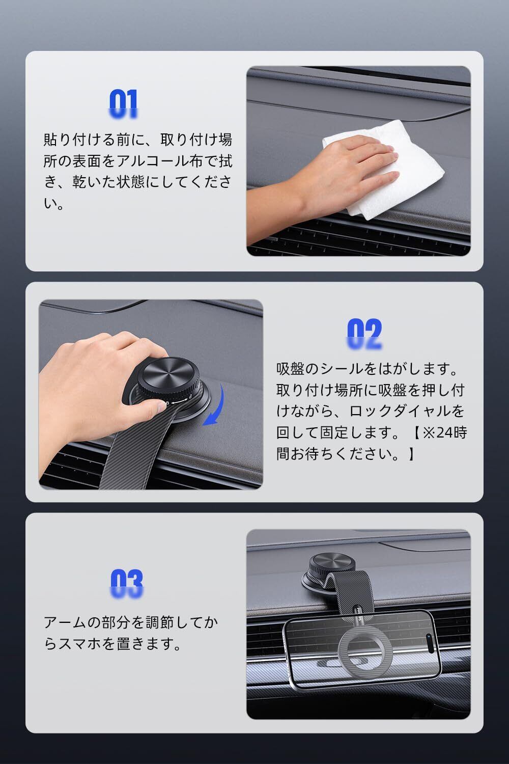 究極の質感:繊細かつ洗練されたデザインを採用しており、車内インテリアにシンプルな高級感で上品な雰囲気を作ります。運転体験をより楽しいものにします。車載シーンだけでなく、家やオフィスでも柔軟に利用できます。デスクや壁面に取り付けるだけで、スマホを自由に操作可能。様々なシーンで便利にお使いいただけます。※本製品はカーボンファイバーのような質感のデザインのみを採用しており、製品の材質はカーボンファイバーではありません。