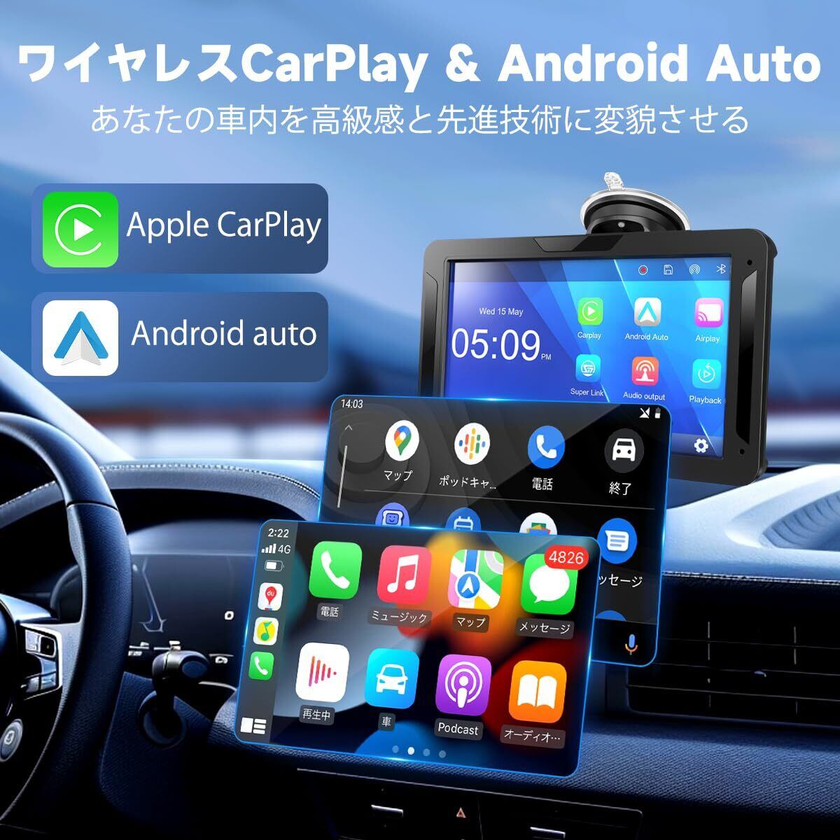 【ワイヤレスApple CarPlay/Android Auto】kuayvanのポータブルカースクリーンは、運転体験にシームレスに溶け込み、さまざまな接続オプションを提供します。 Bluetooth、AUXのいずれを使用していても、調和するように設計されており、Android AutoとCarplayと互換性があります。 この直感的でわかりやすい接続で、すべての旅が強化されます。