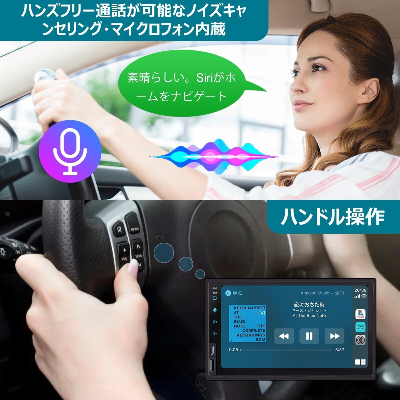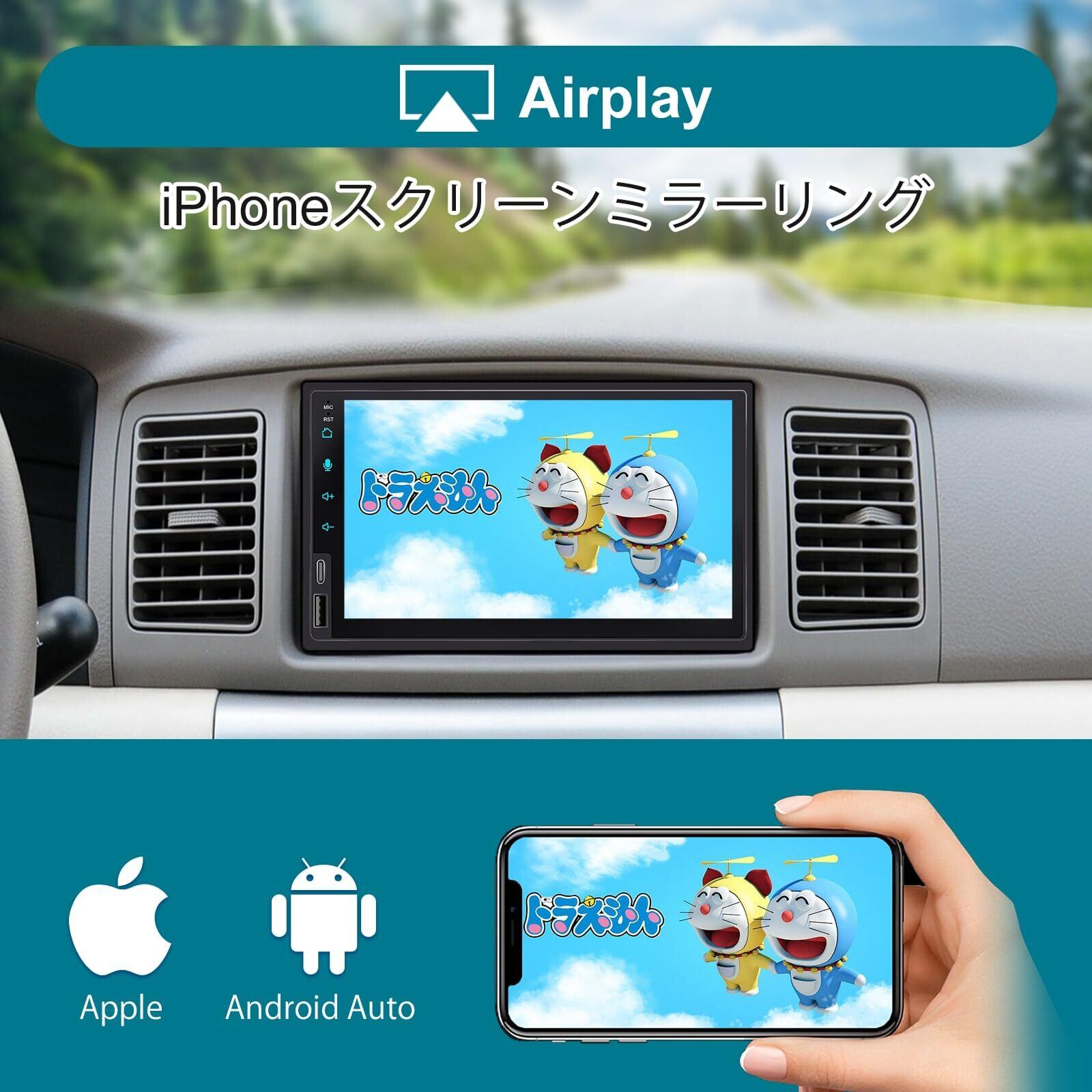 2DIN&7インチ2USB ディスプレイオーディオ 無線CarPlay+AndroidAuto対応:スマホ連携でナビゲーションする バックカメラ連動、映像出入力、ステアリングコントロール ラジオ/アンプ/WiFi/Bluetooth音樂・通話/RCA/日本FM内蔵のインダッシュカーナビ|家族旅行