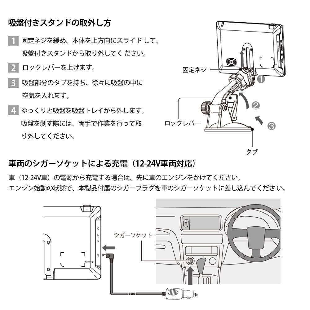 付属コンポーネント 3M両面テープ付き吸盤トレイ, 【日本語取説(本体&ナビ)】, シガー電源アダプター, 取り付けステー(吸盤式)