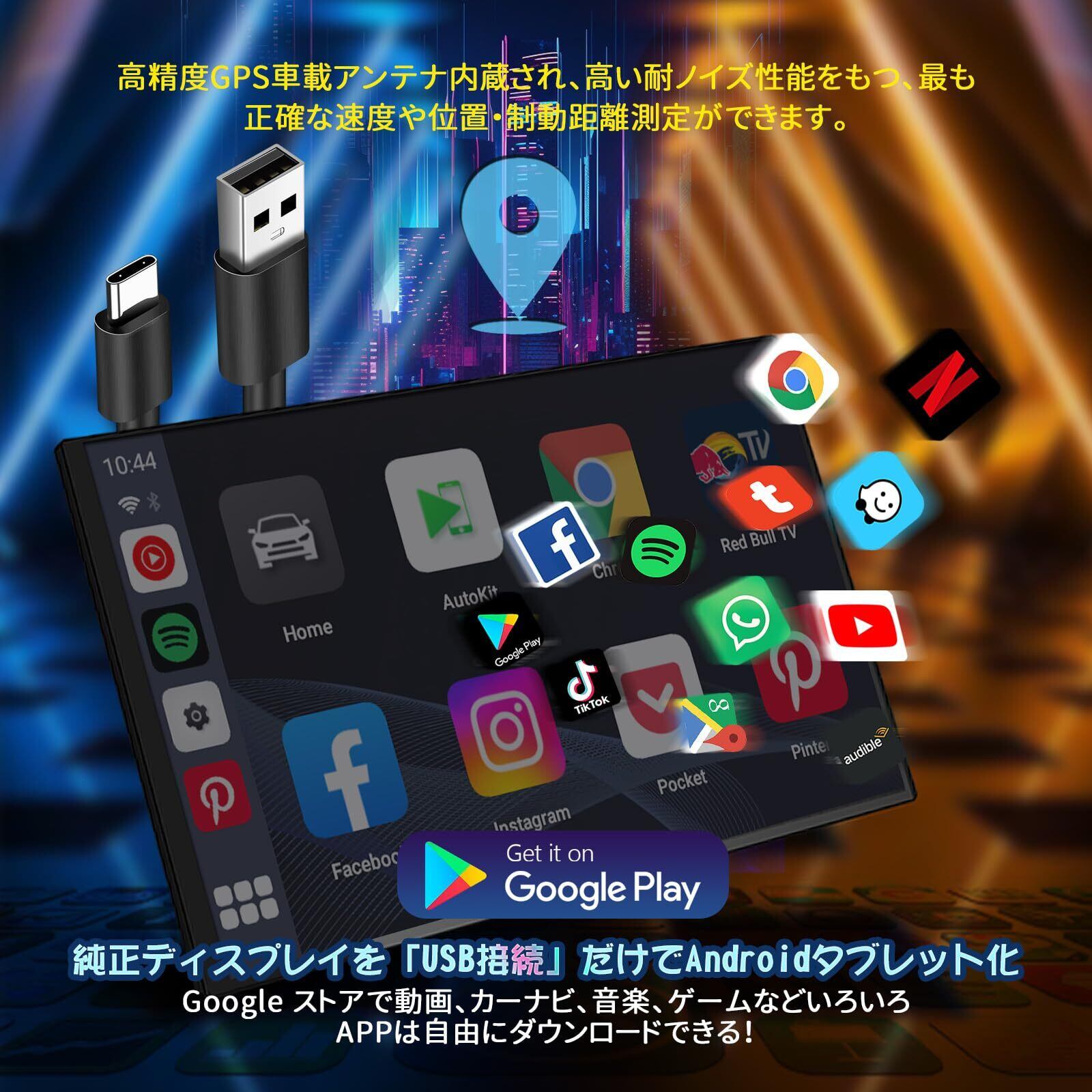 【精度高GPS内蔵-信号弱い地域でも適用】DRIVIM 最新CarPlay AI Boxは、精度高GPSモジュール搭載して、GPSユニットを別途接続する必要もなく、設置場所に困るといった悩みも不要です。低ノイズアンプ(LNA)モジュール採用で、弱い信号を増幅できるため、トンネルや山間部等でも精度の高い位置情報を取得可能です。地図アプリは、GoogleMapやYahooカーナビなどが使用できるため、大変便利です。【AppleCarPlay&AndroidAutoをワイヤレス化】iPhoneと連携可能な車用システム「AppleCarPlay」やAndroidスマホと連携可能な「AndroidAuto」は基本的に有線での接続が必須となります。この製品を装着すると、ワイヤレス(無線)での接続が可能になります。本製品自体はAndroid 13システムを持っていて、Android システムに入って、ワイヤレスcarplay、ワイヤレスAndroid Autoを自由に切り替えることができ、お好きシステムを利用できます。